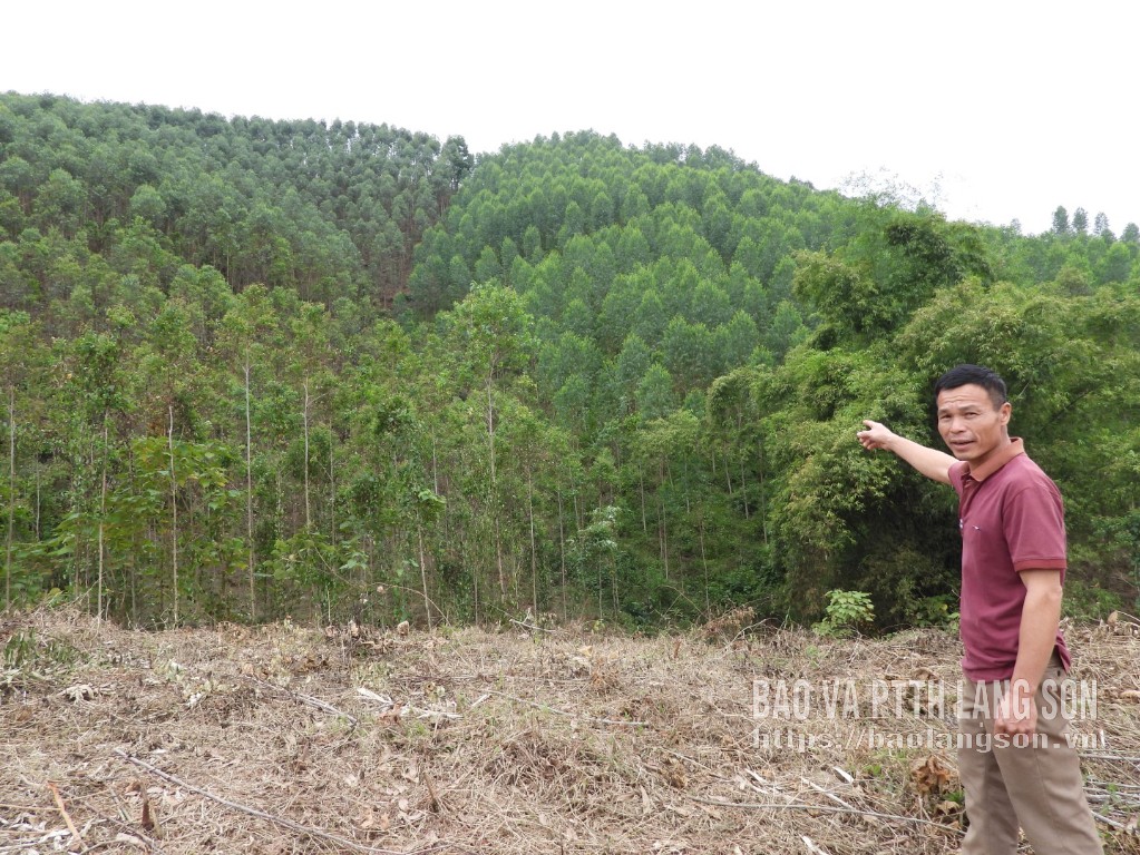 Hộ ông Địch Văn Thịnh, thôn Dân Tiến bên thửa đất rừng đã ký nhận khoán với Công ty TNHH Một thành viên Lâm nghiệp Đông Bắc