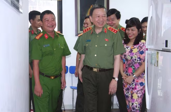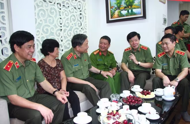 Đồng chí Tổng Bí thư Tô Lâm khi đó là Bộ trưởng Bộ Công an cùng các tướng lĩnh Bộ Công an và Ban Giám đốc Công an thành phố Hà Nội thăm, động viên đồng chí Đặng Việt Quảng nhân ngày Thương binh liệt sĩ 27-7-2016 tại nhà riêng