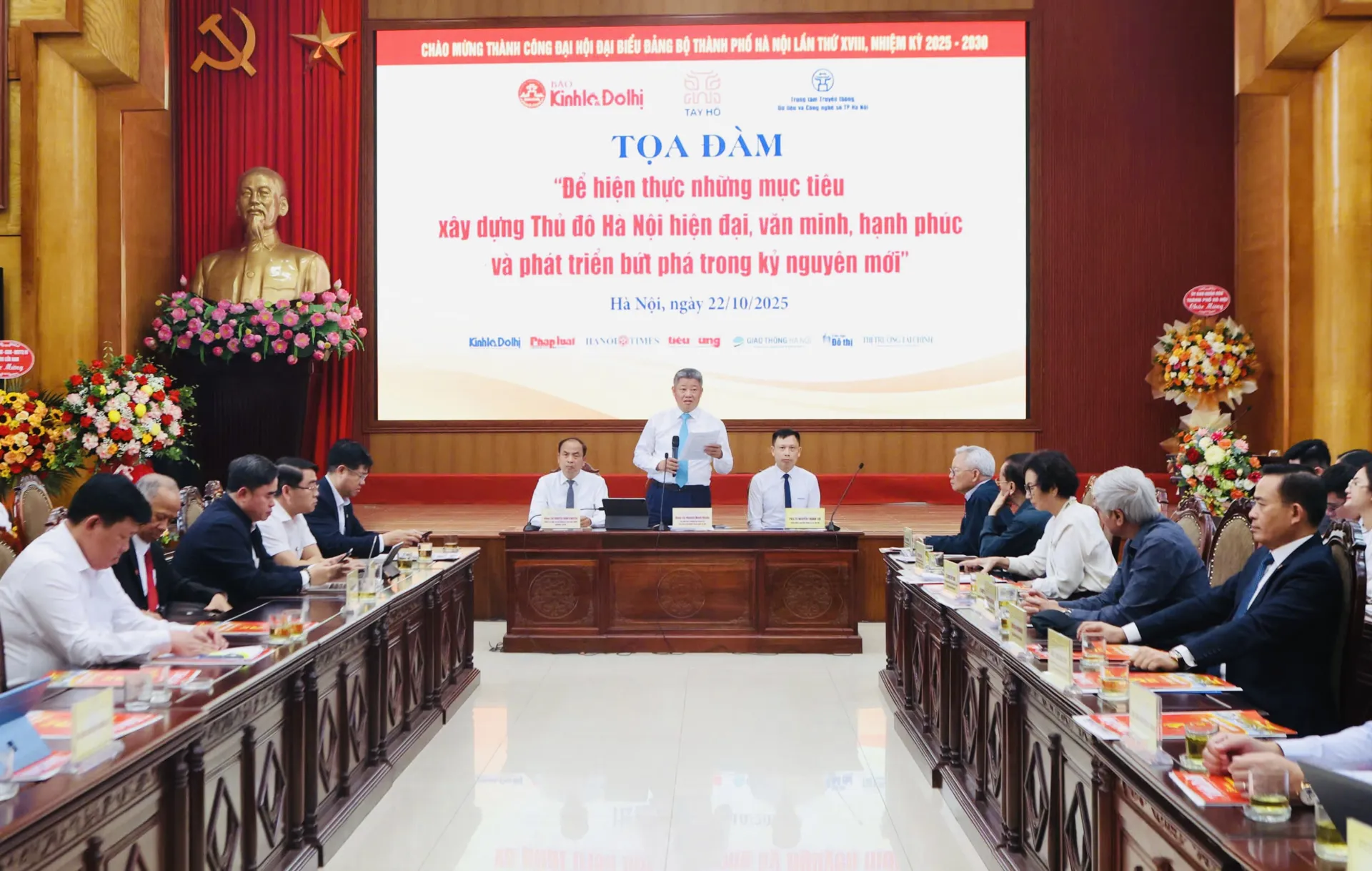 Quang cảnh tọa đàm với chủ đề “Để hiện thực những mục tiêu xây dựng Thủ đô Hà Nội hiện đại, văn minh, hạnh phúc và phát triển bứt phá trong kỷ nguyên mới”