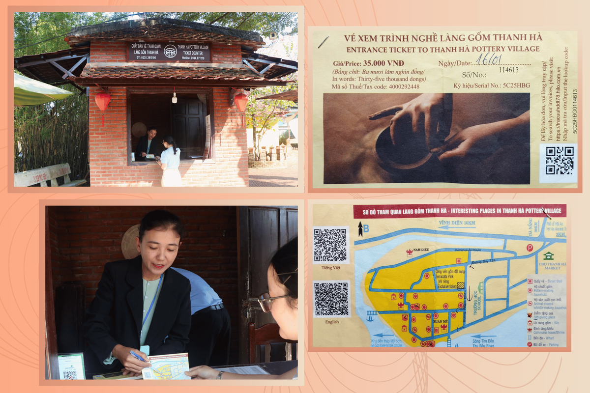 Du khách mua vé, bắt đầu hành trình trải nghiệm tại làng gốm Thanh Hà.