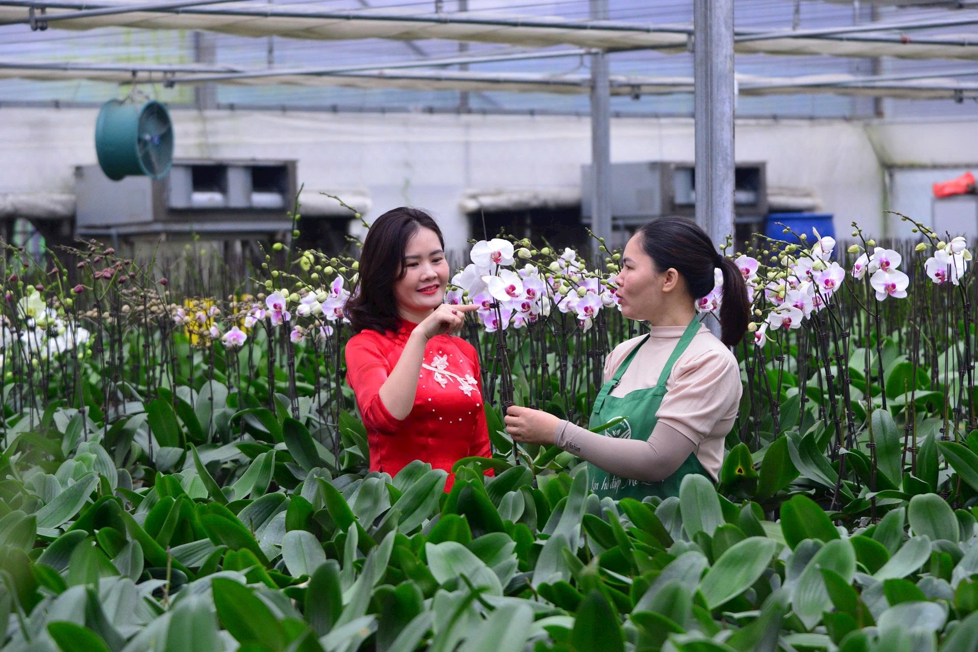 Mô hình trồng hoa lan ứng dụng công nghệ cao ở xã Quang Minh cho thu nhập cao. Ảnh: Phạm Hùng