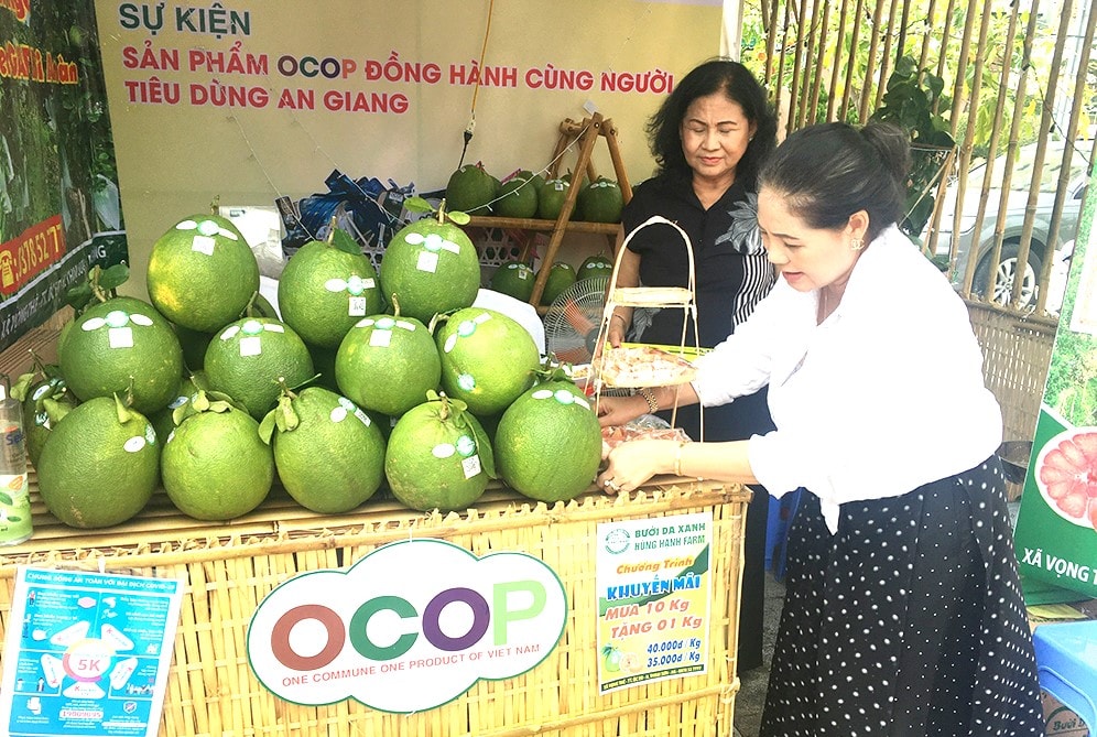 Sản phẩm bưởi da xanh được hỗ trợ quảng bá tại các kỳ hội chợ, triển lãm. Ảnh: Đức Toàn