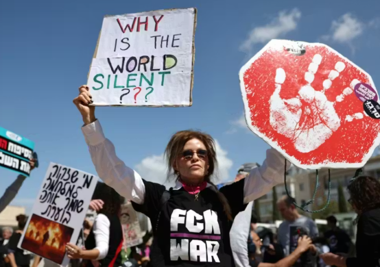 Người biểu tình ở Tel Aviv, Israel, kêu gọi chấm dứt chiến tranh với Iran. Ảnh: EPA