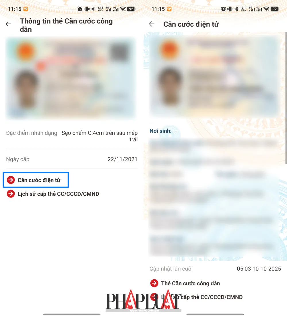 - Bước 3: Trong trang mới hiện ra, bạn chỉ cần nhấn vào mục Căn cước điện tử. Lúc này, màn hình sẽ hiển thị toàn bộ thông tin cá nhân liên quan đến bạn và đặc điểm nhận dạng.