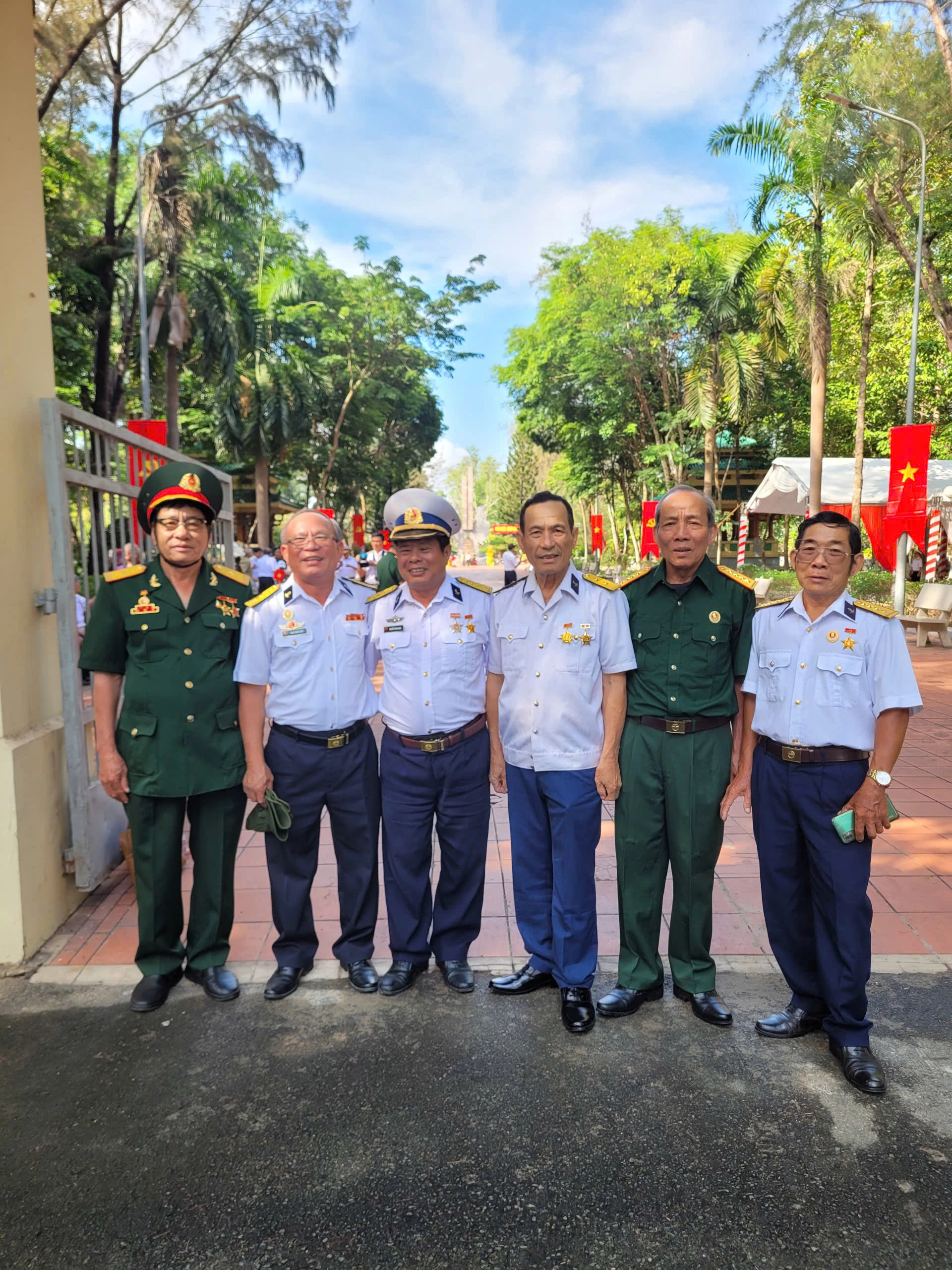 Đại tá Nguyễn Văn Bang (thứ 3 từ trái qua) gặp lại đồng đội trong lần về viếng Nghĩa trang liệt sĩ Long Thành, tỉnh Đồng Nai.