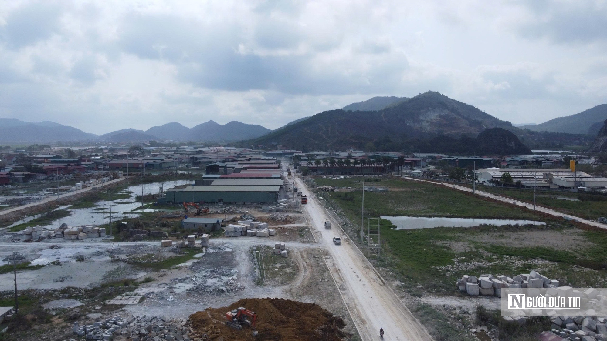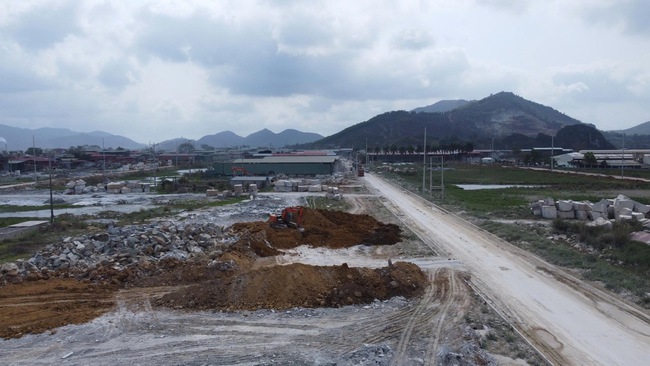 Ghi nhận tại hiện trường tháng 3/2026, tuyến đường vào cụm còn ngổn ngang, nhiều đoạn lầy lội; trên công trường chỉ có một vài máy móc hoạt động cầm chừng. Dự án từng được kỳ vọng tập trung các cơ sở chế tác đá, giảm ô nhiễm môi trường trong khu dân cư.