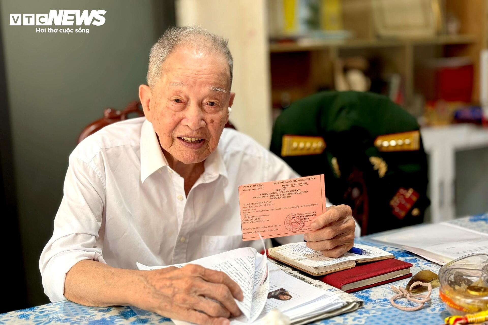 Buổi chiều lặng gió trong căn nhà nhỏ ở phường Thạnh Mỹ Tây, TP.HCM, người tình báo anh hùng 98 tuổi ngồi bên chiếc bàn gỗ đã theo ông suốt nhiều thập kỷ. Ánh sáng nhạt từ khung cửa sổ hắt xuống, chiếu lên tấm phiếu cử tri vừa được trao tận tay.