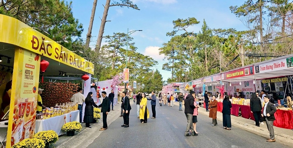 Ngay sau đó, Chương trình Hoa mai anh đào chắp cánh thương hiệu Đà Lạt diễn ra trên tuyến đường Hồ Tùng Mậu, hình thành không gian trưng bày, trải nghiệm với hơn 13 cụm gian hàng giới thiệu đặc sản Đà Lạt - Lâm Đồng, sản phẩm OCOP và các hoạt động quảng bá du lịch địa phương.