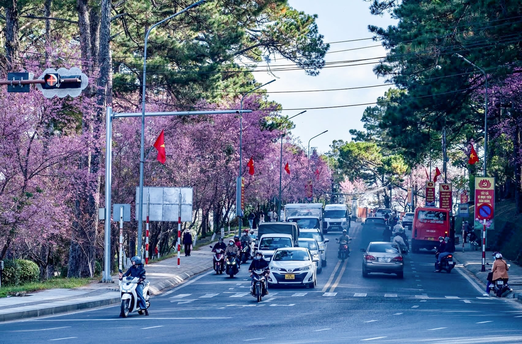 Hoa mai anh đào nhuộm hồng đường phố khu vực trung tâm Đà Lạt