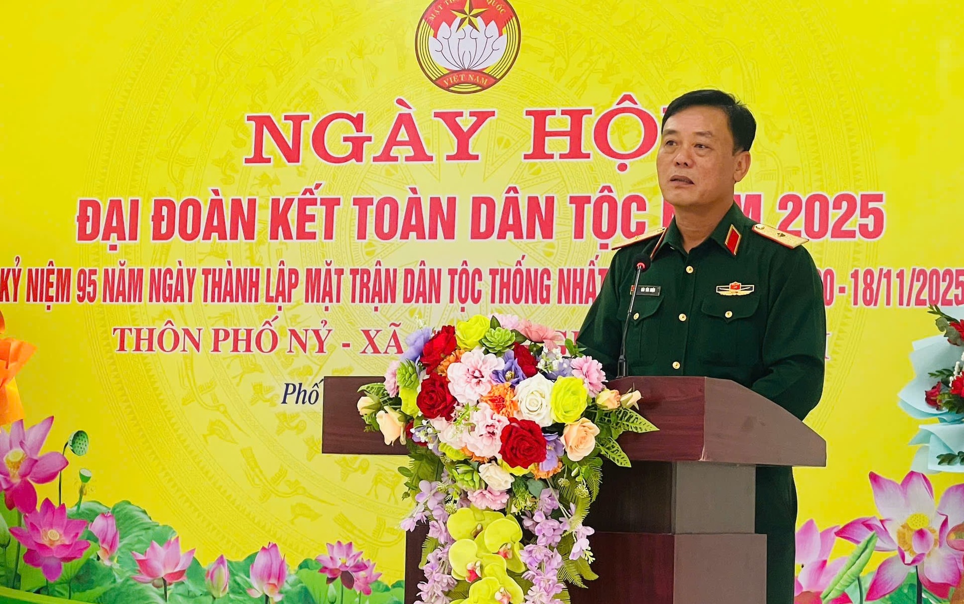 Phát biểu và chia vui cùng cán bộ, đảng viên và nhân dân thôn Phố Nỷ trong Ngày hội Đại đoàn kết toàn dân tộc, Thiếu tướng Đào Văn Nhận bày tỏ vui mừng khi được tham dự, trực tiếp nghe báo cáo, các tham luận và tiết mục văn nghệ sôi nổi, phản ánh rõ nét tinh thần đoàn kết, niềm tự hào và tình làng nghĩa xóm của xã.