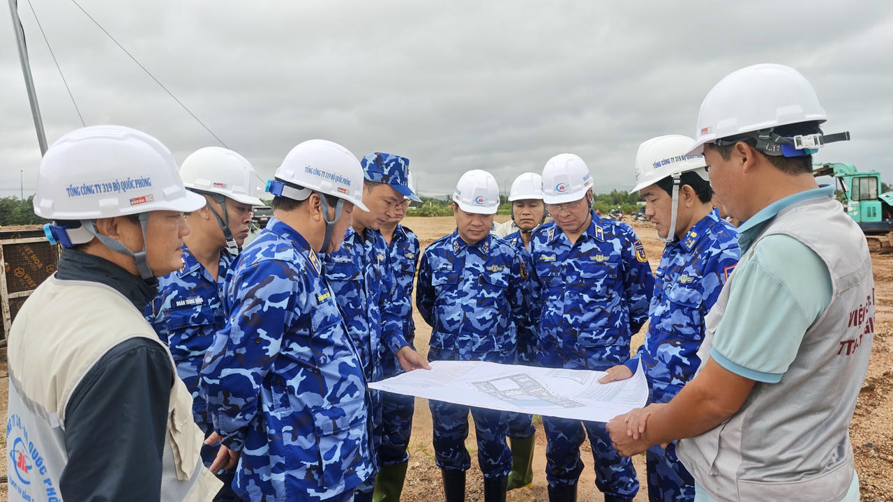 Thiếu tướng Lê Đình Cường - Tư lệnh Cảnh sát biển Việt Nam kiểm tra công tác phòng chống bão số 13 tại công trường xây dựng dự án của BTL Vùng Cảnh sát biển 2 và các trang thiết bị trên tàu.