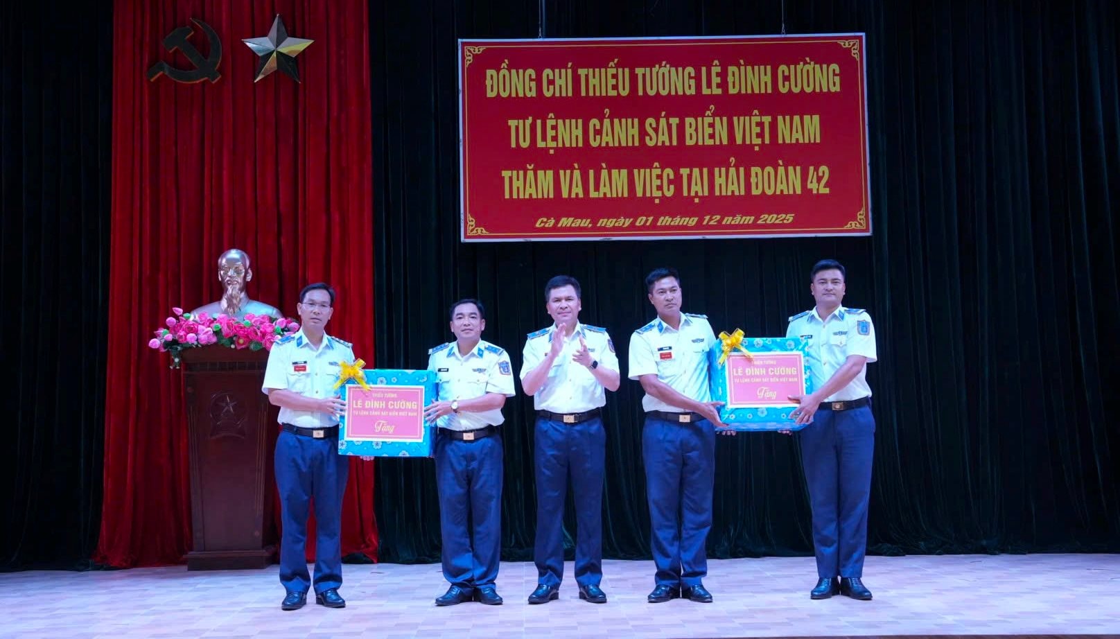 Cũng trong dịp này Tư lệnh Cảnh sát biển đã trao tặng những phần quà ý nghĩa động viên cán bộ, chiến sĩ Hải đoàn 42.
