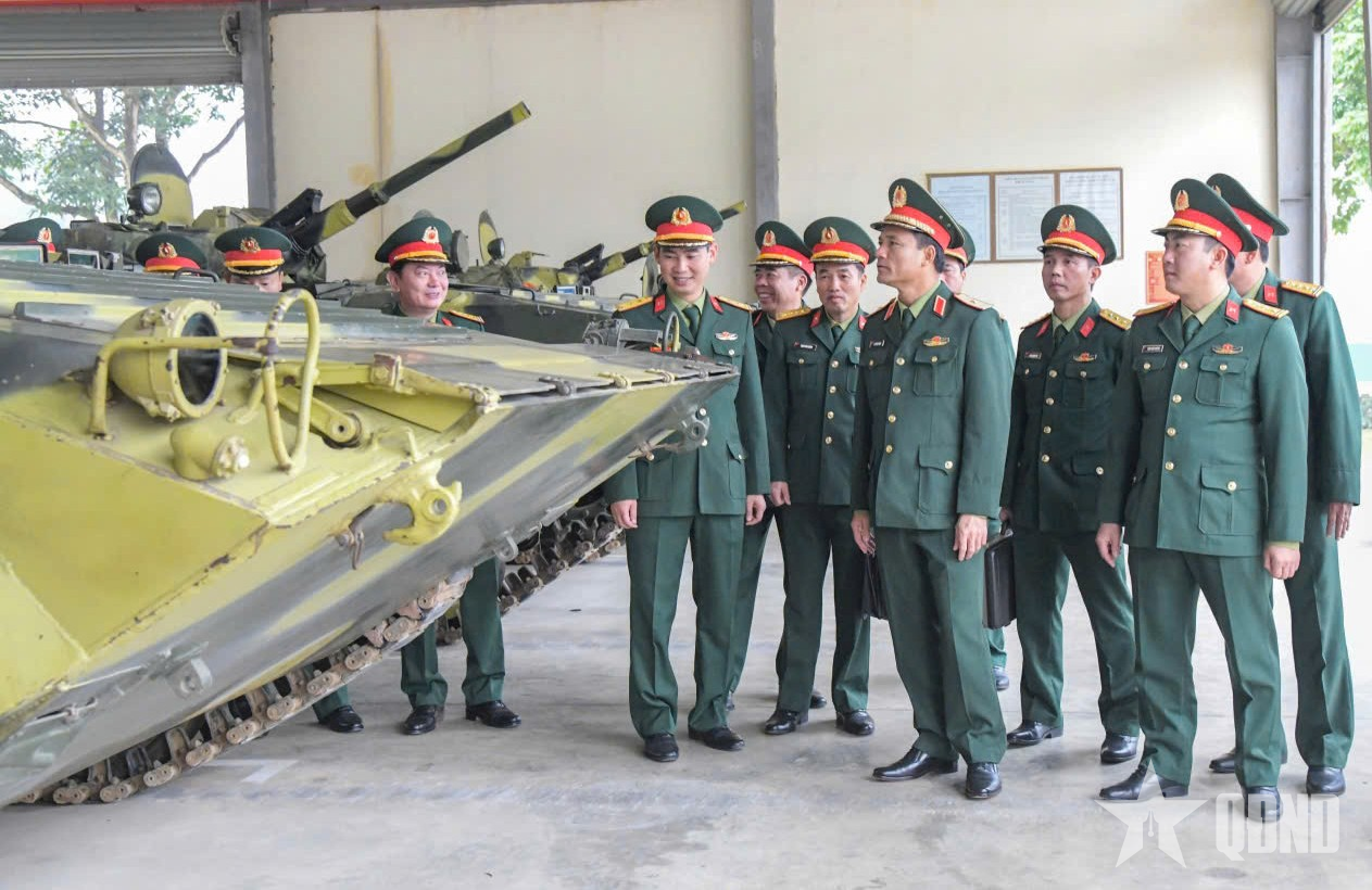Thiếu tướng Lê Xuân Thuân kiểm tra công tác bảo đảm kỹ thuật tại nhà xe đơn vị.
