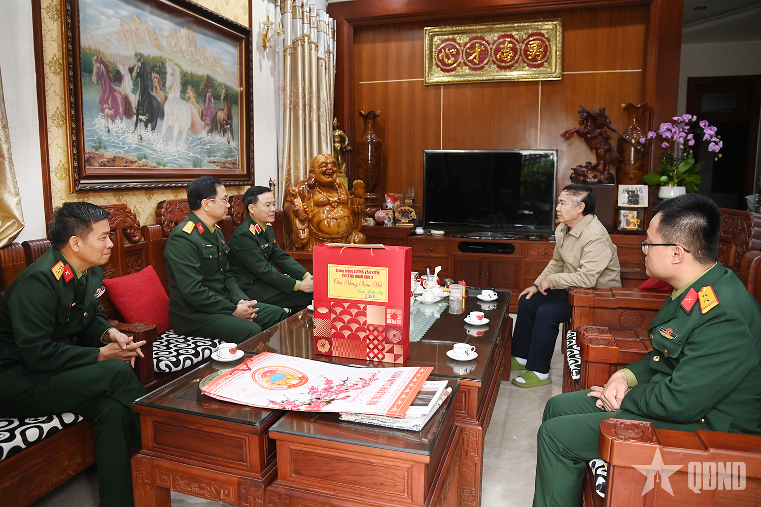 Trung tướng Lương Văn Kiểm đến thăm, chúc Tết gia đình Thiếu tướng Trần Thành, nguyên Phó tư lệnh Quân khu 3.