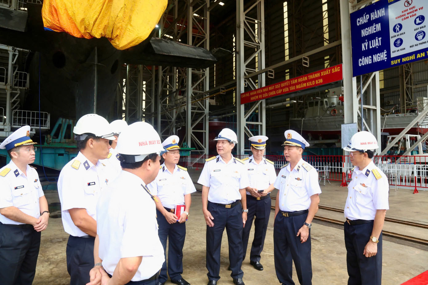 Chuẩn đô đốc Nguyễn Anh Tuấn (bìa phải) kiểm tra tại Lữ đoàn Tàu ngầm 189. Ảnh: T.H.