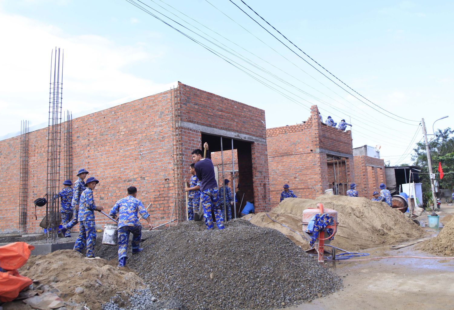 Tại công trường đang xây dựng mới 4 căn nhà, diện tích hơn 100m2/căn thuộc diện tái định cư cho các hộ dân bị thiệt hại nặng nề sau đợt mưa lũ vừa qua. Điều kiện ăn nghỉ của 70 cán bộ, chiến sĩ đang làm nhiệm vụ được bảo đảm; cán bộ, chiến sĩ đoàn kết, ý chí quyết tâm cao, phấn đấu hoàn thành xây dựng các căn nhà vượt tiến độ.