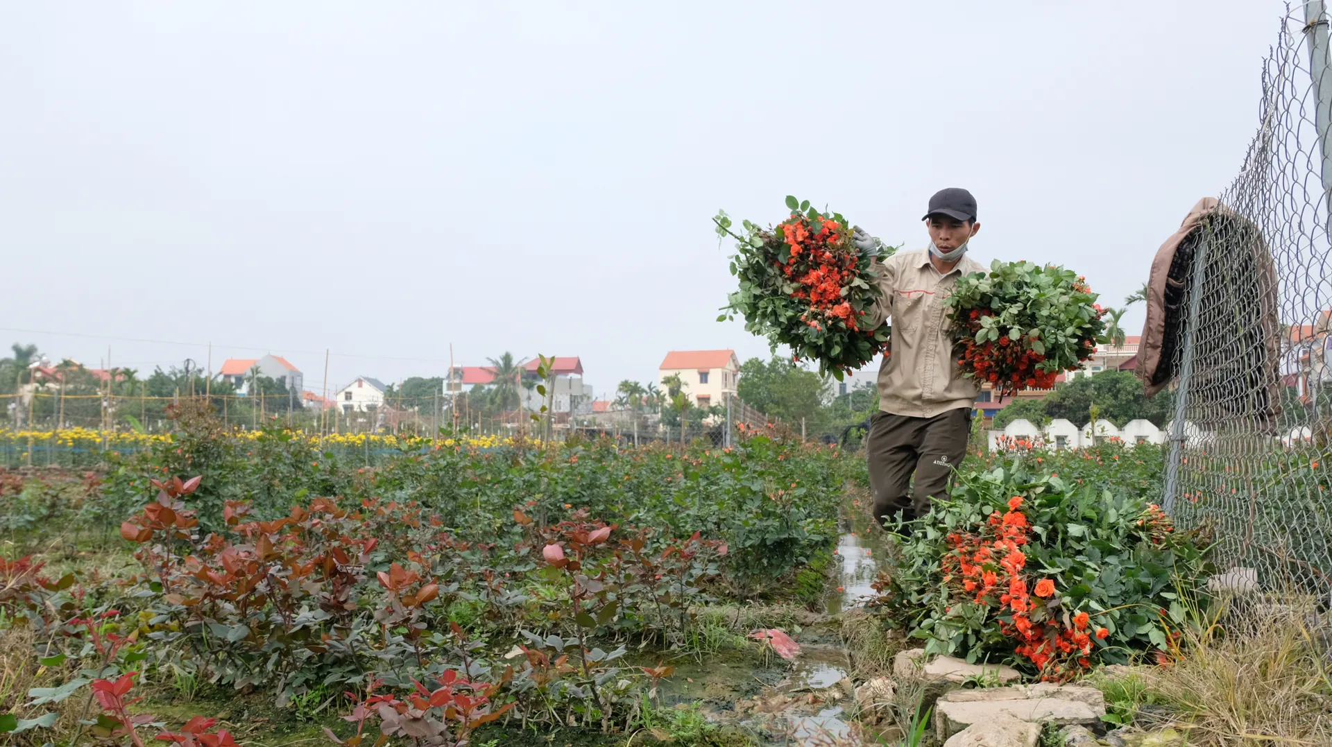 Thu hoạch hoa hồng tại xã Mê Linh (TP Hà Nội).
