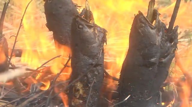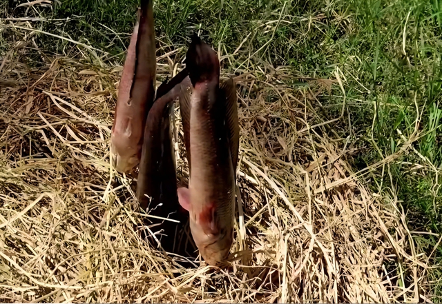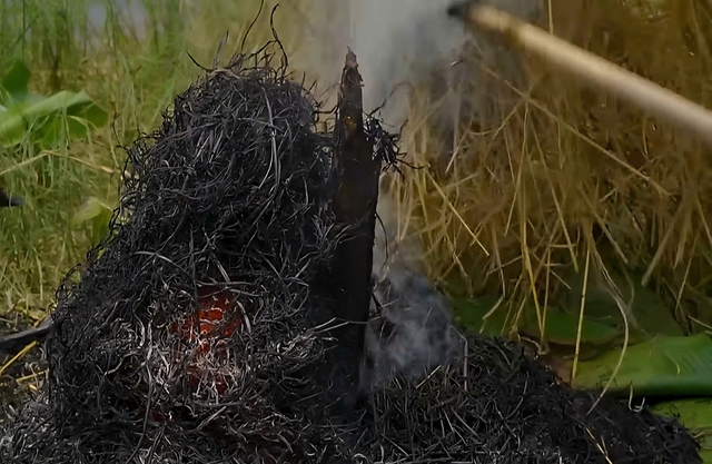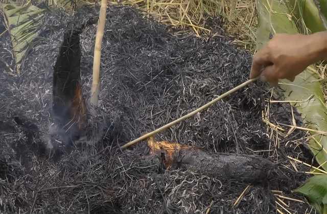 Chỉ cần xiên cá bằng cành cây hoặc cây tre, rồi nướng trực tiếp bằng rơm hoặc củi khô.