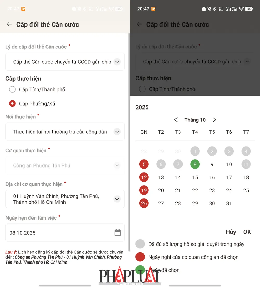 Đặt ngày hẹn đến làm thẻ căn cước. Ảnh: MINH HOÀNG