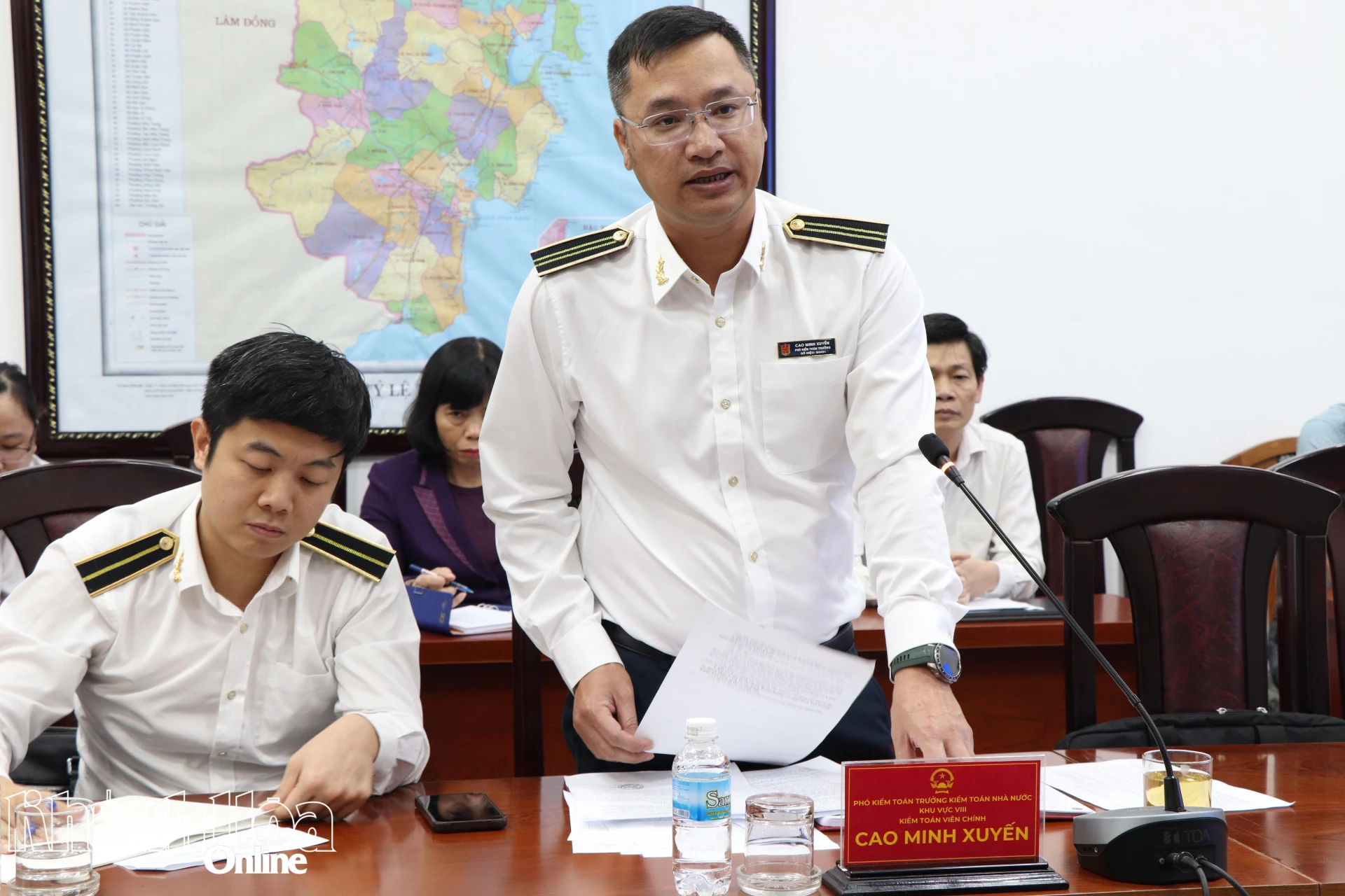 Ông Cao Minh Xuyến - Phó Kiểm toán trưởng Kiểm toán Nhà nước Khu vực VIII, Trưởng đoàn khảo sát phát biểu tại buổi làm việc.