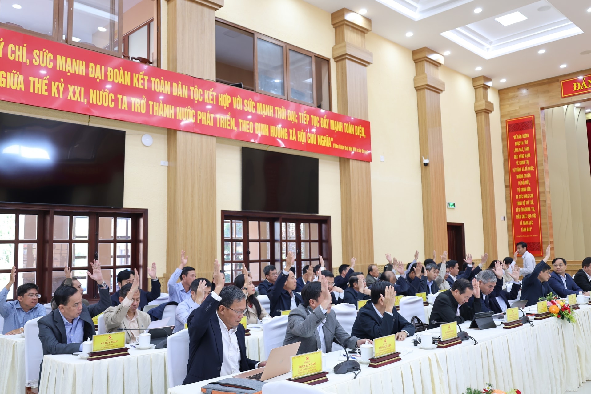 Các đồng chí Ủy viên Ban Chấp hành Đảng bộ tỉnh nhiệm kỳ 2025 - 2030, biểu quyết thống nhất thông qua chủ trương đầu tư các dự án trọng điểm tại Hội nghị Tỉnh ủy ngày 13/11
