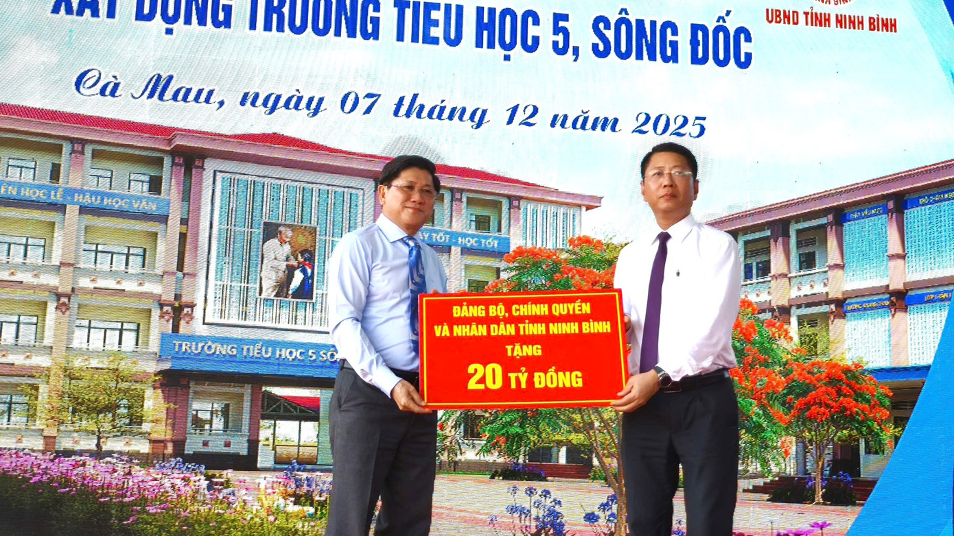 Chiều 7/12, tại miền biển xã Sông Đốc (tỉnh Cà Mau), UBND tỉnh Cà Mau tổ chức lễ khởi công xây dựng Trường tiểu học 5 Sông Đốc. Công trình là điểm nhấn quan trọng kỷ niệm 65 năm kết nghĩa giữa tỉnh Cà Mau và Ninh Bình (1960 – 2025).