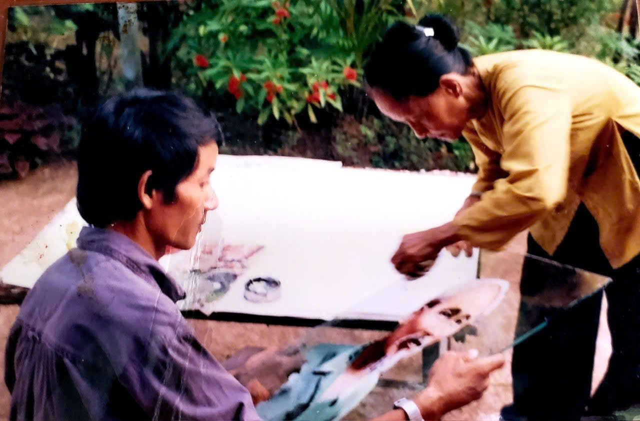 Thấy con mê vẽ, cụ bà Đàm Thị Thành (mẹ ông Tiến, đã mất) hết lòng ủng hộ. Nhặt được mảnh giấy nào, bà cũng đem về cho con vẽ.