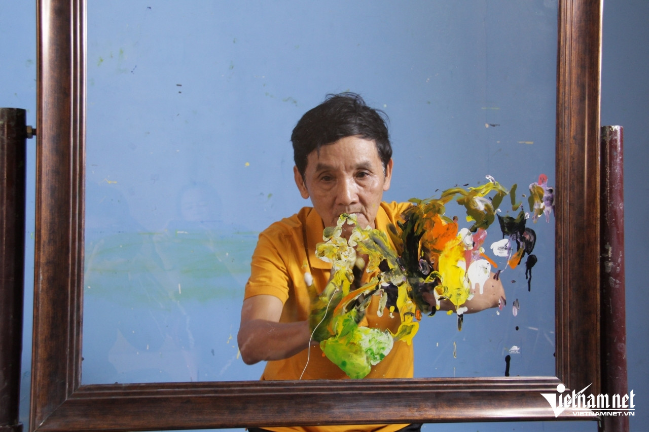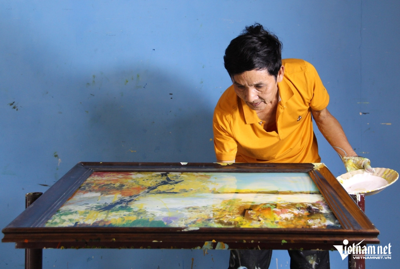 Suốt thời gian này, ông Tiến chống chọi với bệnh tật bằng niềm đam mê hội họa mãnh liệt. Bất chấp việc 10 đầu ngón tay ê ẩm, teo tóp, bị bào mòn, ông vẫn kiên trì vẽ.