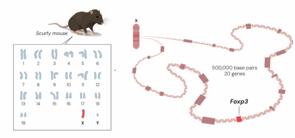 Ở bên kia Thái Bình Dương, hai nhà khoa học Mary Brunkow và Fred Ramsdell lại theo đuổi một bí ẩn khác. Trong quá trình nghiên cứu di truyền ở Oak Ridge (Mỹ), họ phát hiện một dòng chuột đực kỳ lạ - da bong tróc, hạch phình to và chết chỉ sau vài tuần. Dòng chuột này được đặt tên là scurfy.