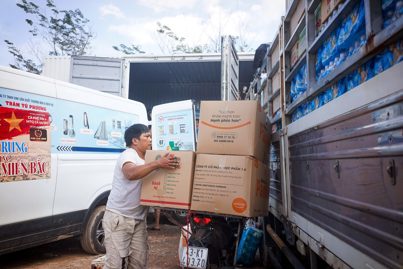 Ghi nhận của phóng viên Tiền Phong ngày 11/10, tại điểm tập kết hàng cứu trợ trên đường Nam Trân (phường Hòa Khánh, TP Đà Nẵng), hàng chục tình nguyện viên tấp nập bốc mì tôm, gạo, áo quần… lên xe, chuẩn bị lên đường hướng về vùng lũ miền Bắc. Đây là nơi tiếp nhận tấm lòng của người dân Đà Nẵng trong những ngày qua khi hay tin nhiều nơi ở miền Bắc bị lũ bủa vây, cô lập.