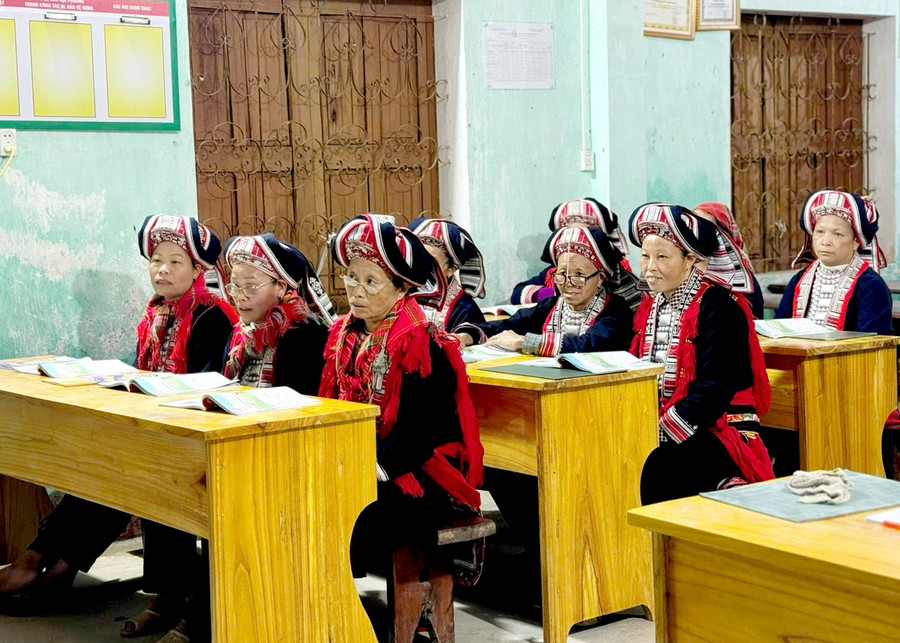 Lớp học xóa mù chữ ở thôn Đoàn Kết, xã Hồ Thầu, tỉnh Tuyên Quang.