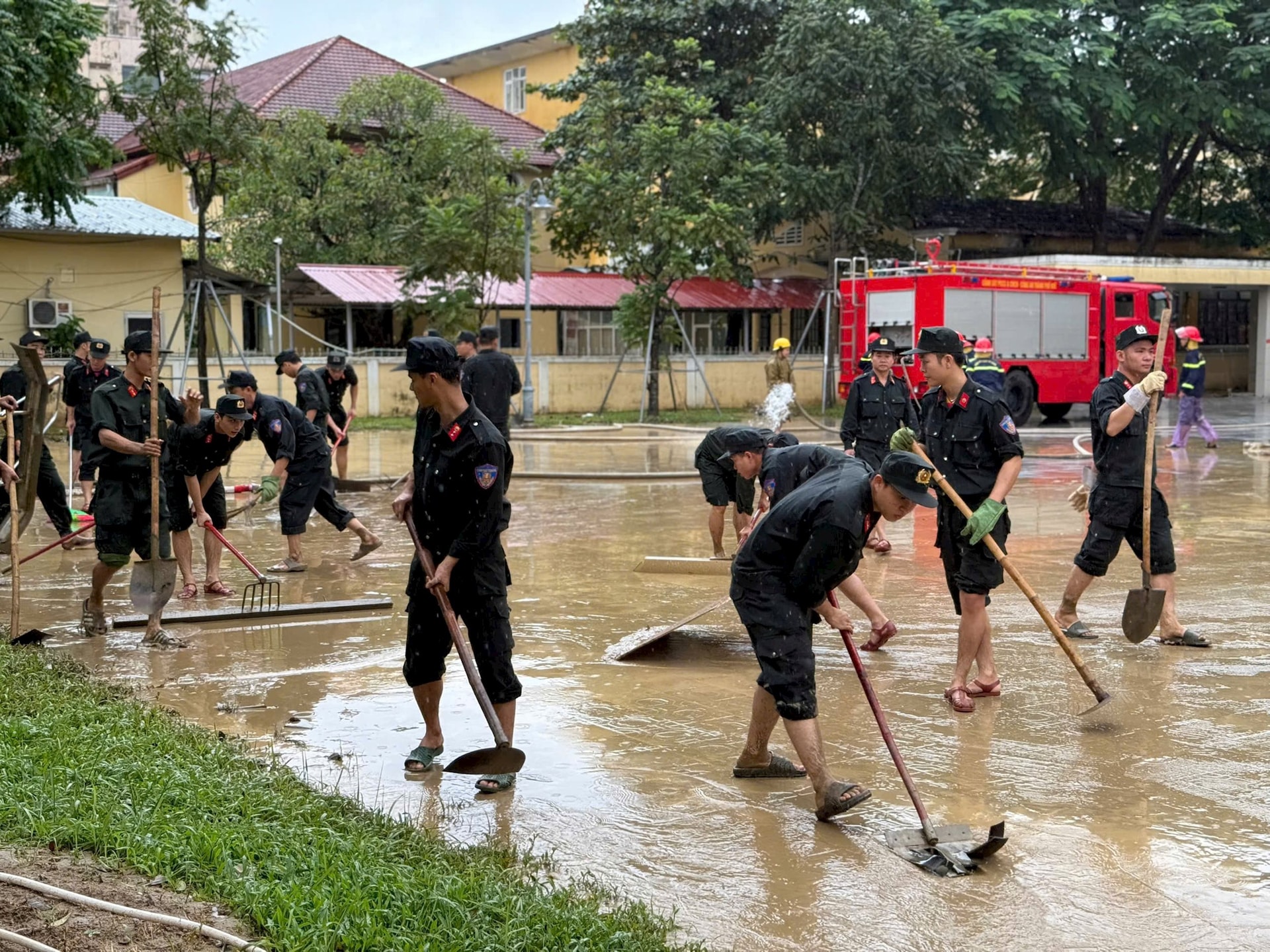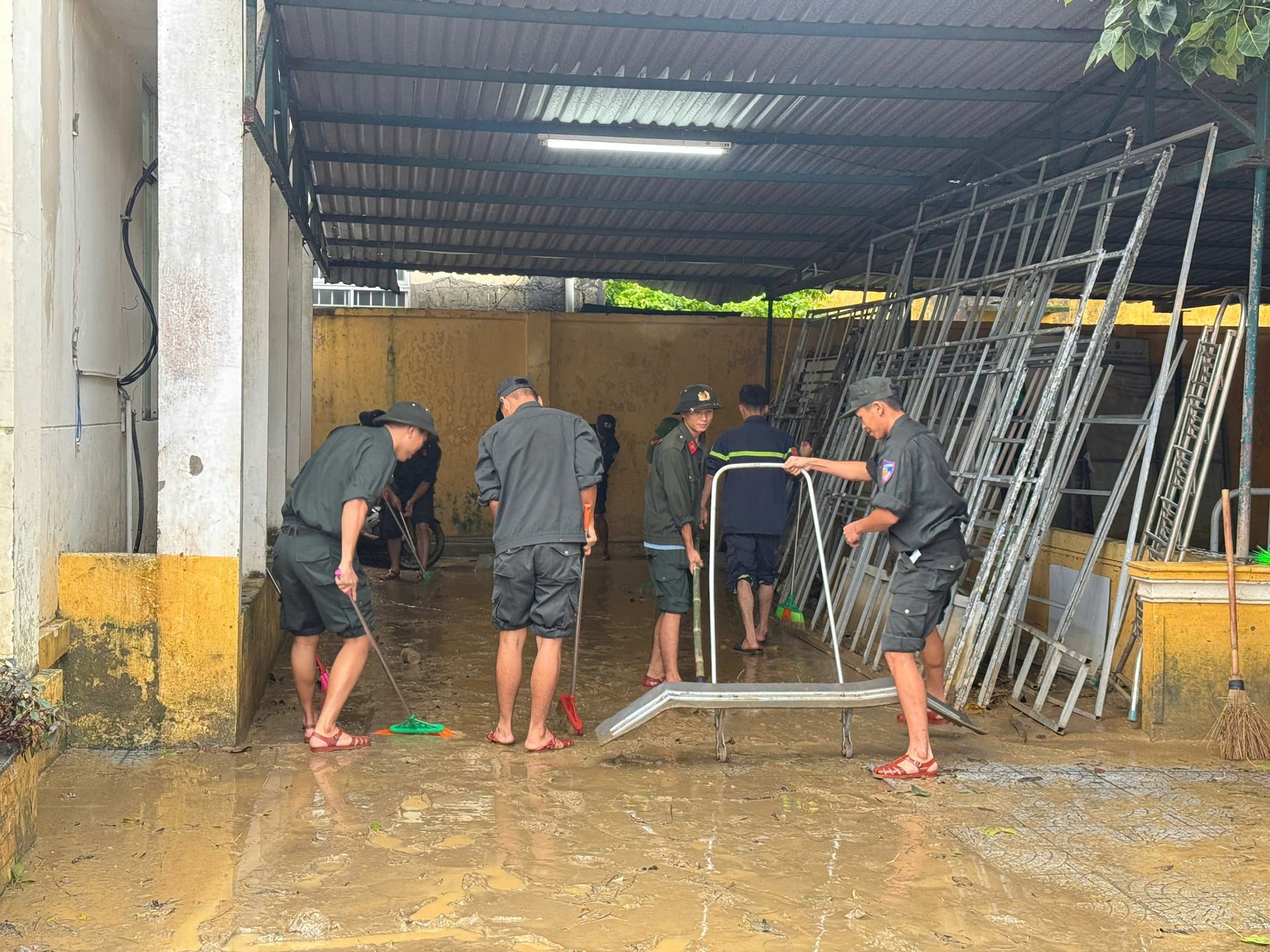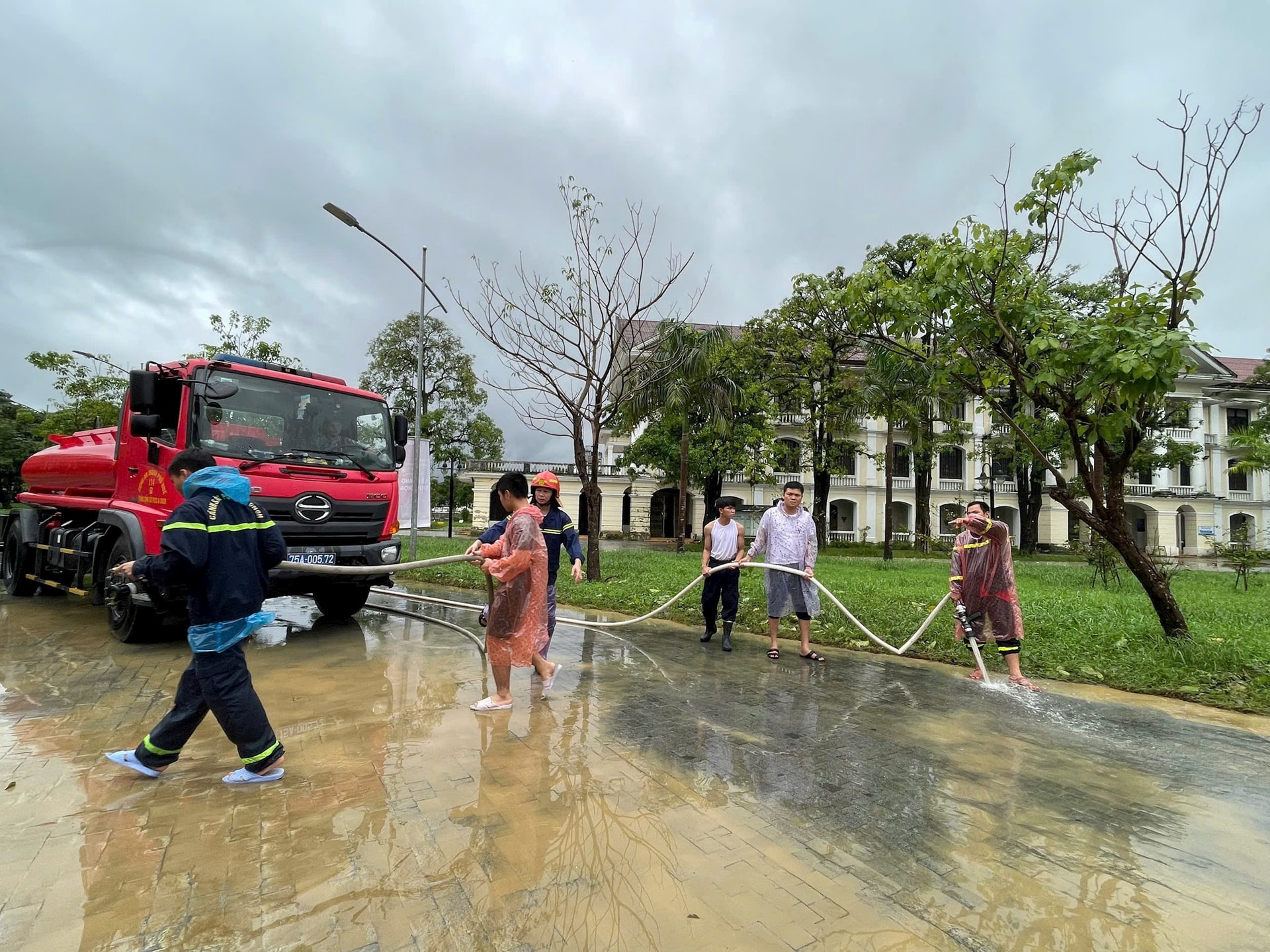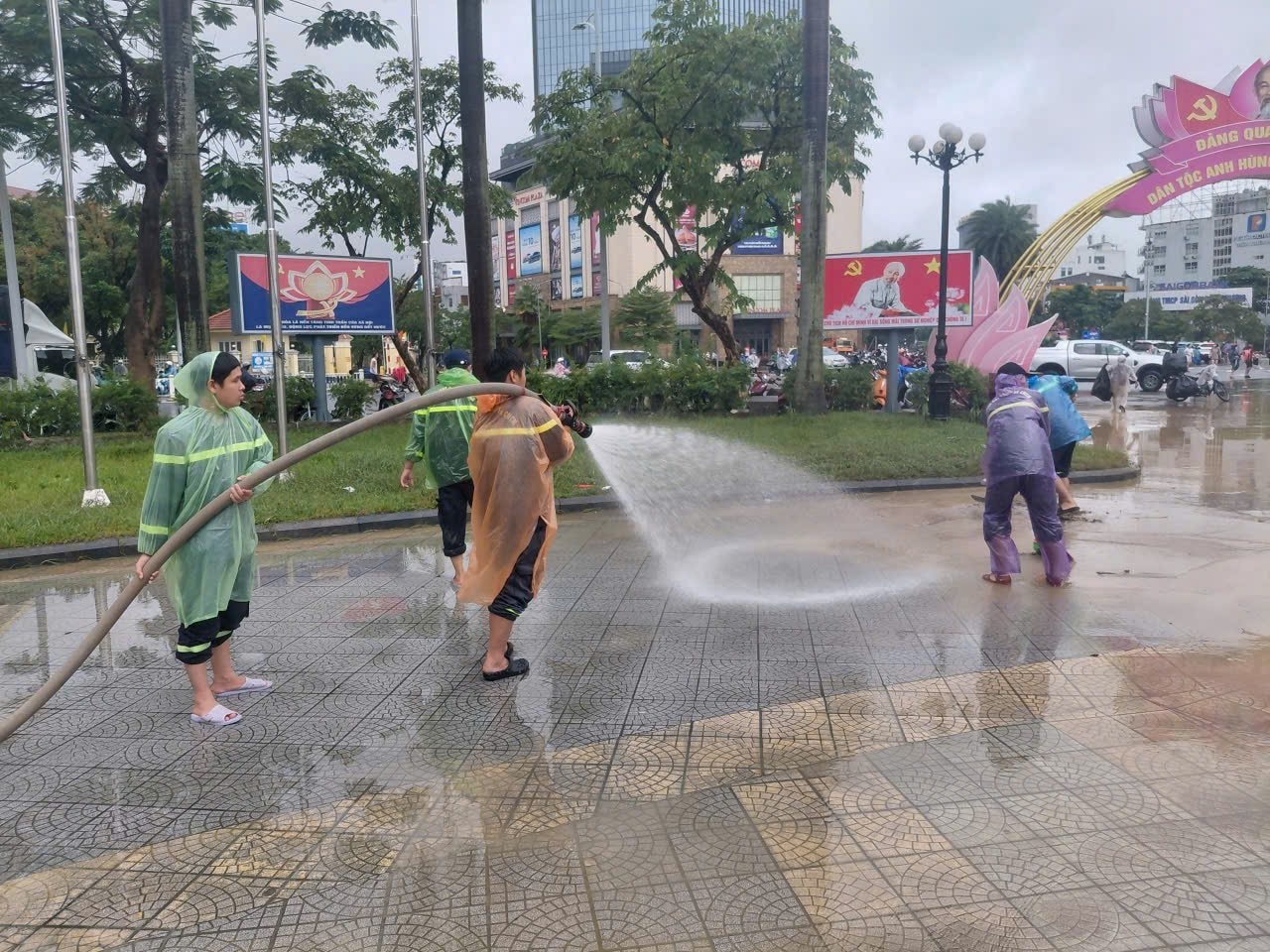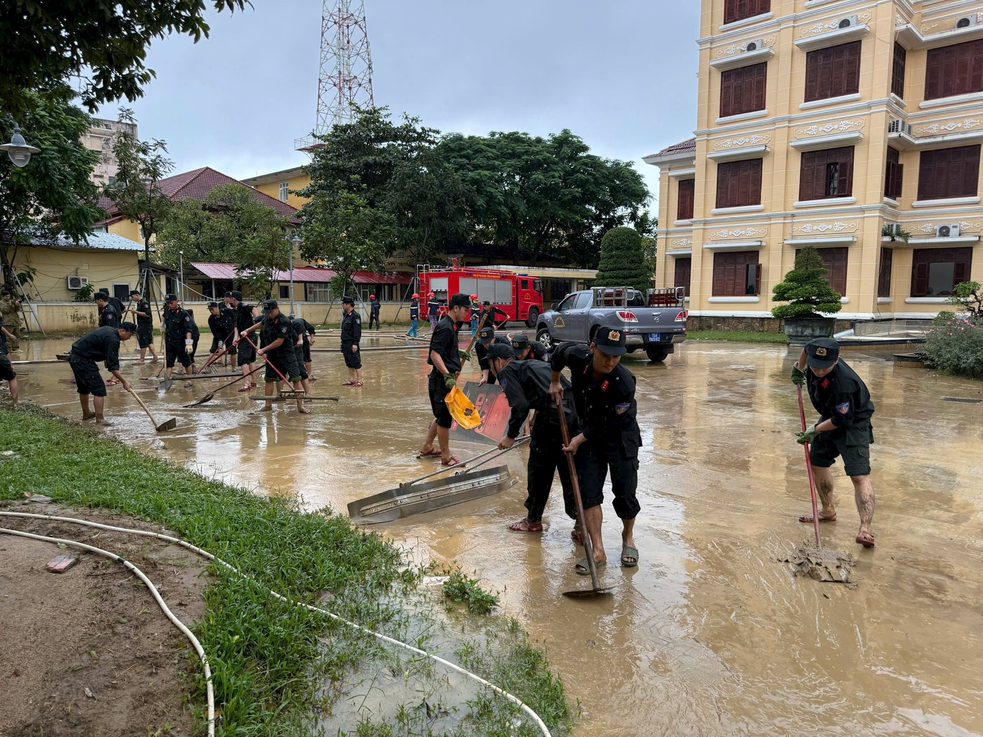 Ngay khi nước lũ bắt đầu rút, các đơn vị đã huy động tối đa nhân lực, phương tiện chuyên dụng phối hợp với Công an thành phố Huế triển khai các nhiệm vụ trọng tâm: dọn dẹp vệ sinh, thu gom rác thải, xử lý ô nhiễm môi trường, đặc biệt tại các khu vực bị ảnh hưởng nặng như Bảo tàng Hồ Chí Minh, Nhà hát Sông Hương, Bệnh viện Đại học Y Dược Huế, tuyến đường Lê Lợi và nhiều địa điểm trọng yếu khác trên địa bàn.