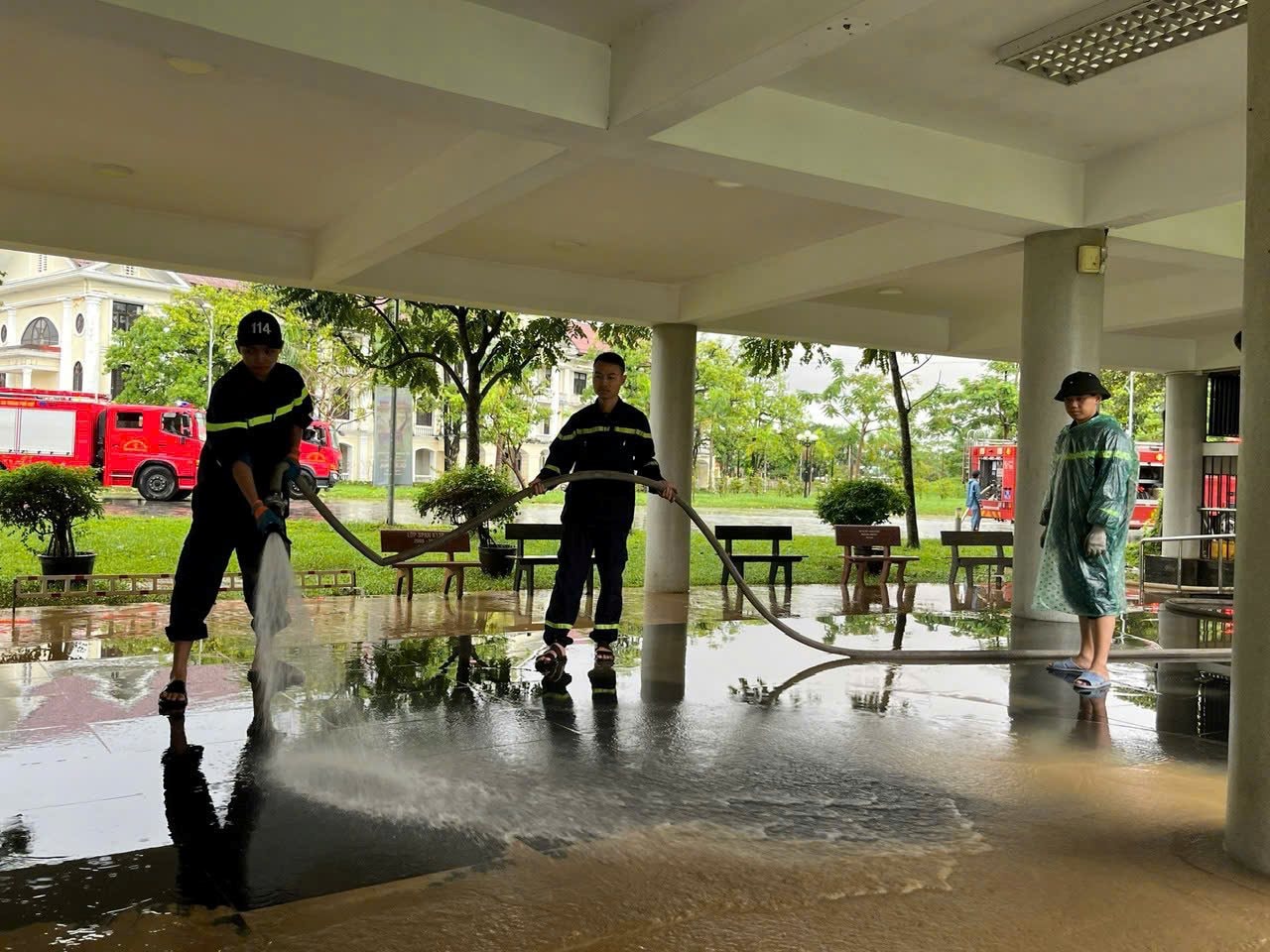 Các xe bồn chữa cháy, xe chuyên dụng của lực lượng Cảnh sát PCCC và Cảnh sát cơ động được huy động tối đa, sử dụng vòi rồng áp lực cao để xịt rửa, đẩy bùn đất, rác thải, nhanh chóng trả lại cảnh quan sạch sẽ, thông thoáng cho trung tâm thành phố.