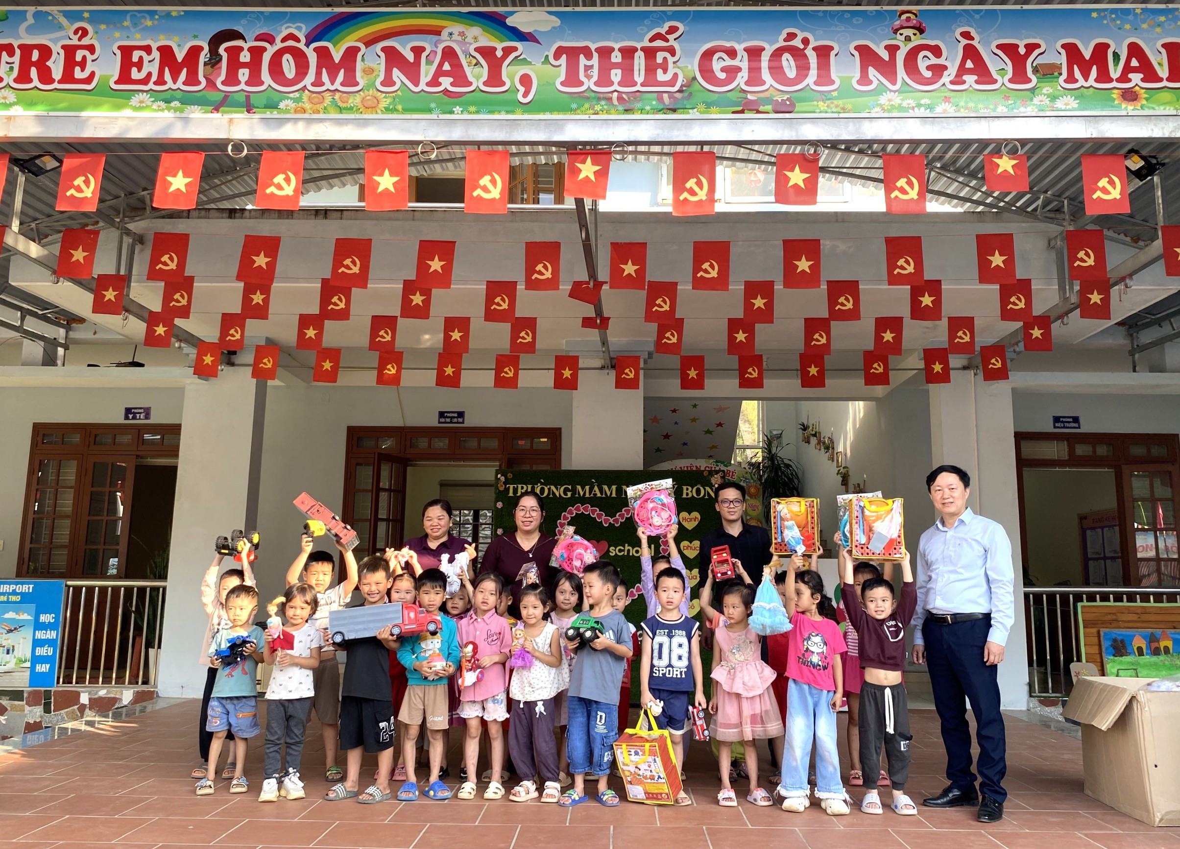 Anh Trần Hải Nam thăm, tặng quà Trường Mầm non Lý Bôn (xã Lý Bôn).