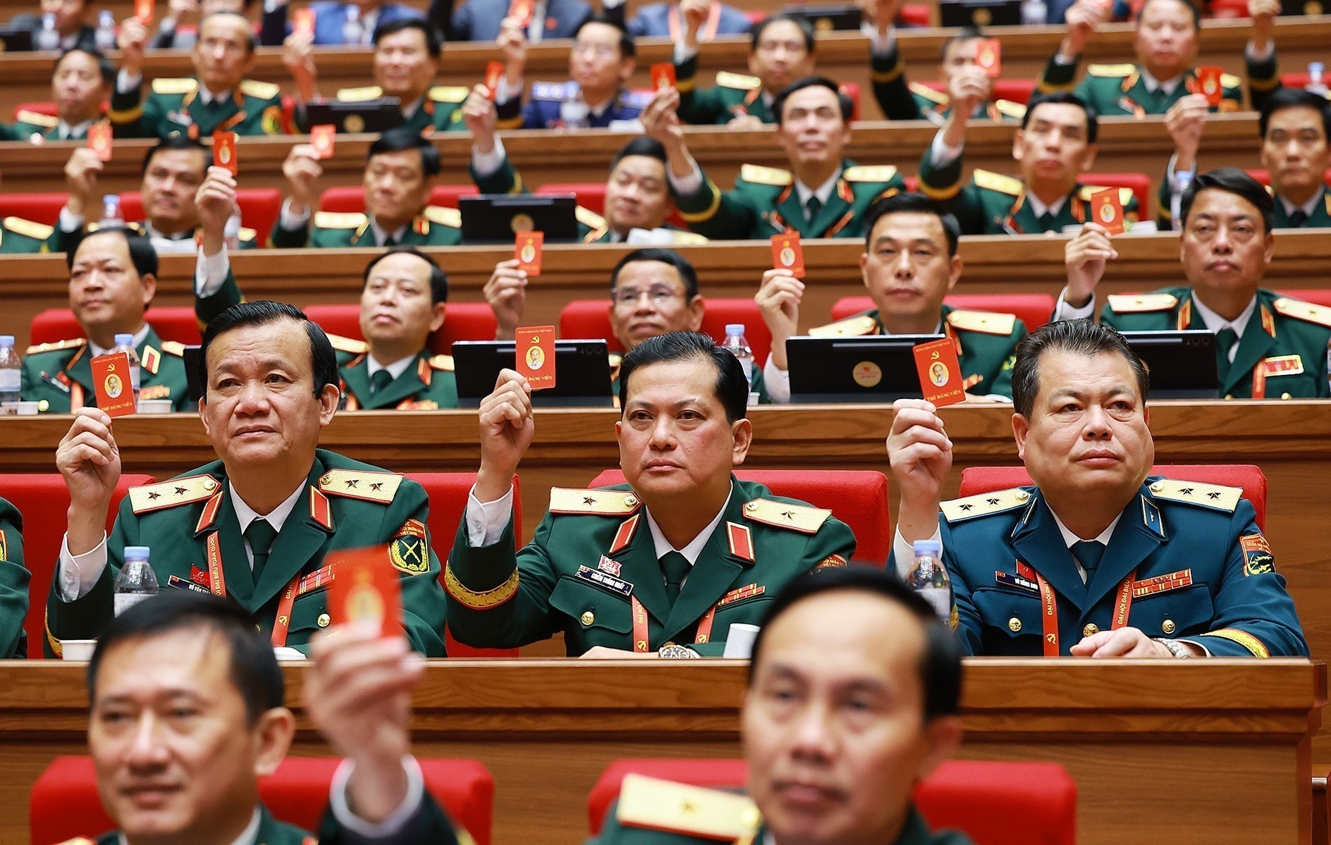Các đại biểu biểu quyết thông qua danh sách bầu cử Ban Chấp hành Trung ương Đảng khóa XIV. Ảnh: TTXVN