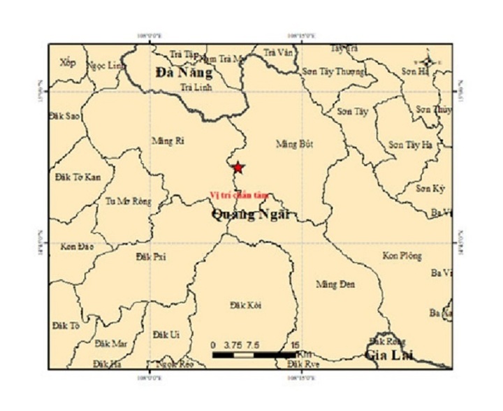 Trung tâm Báo tin động đất và Cảnh báo sóng thần, Viện Các khoa học Trái đất, vừa phát đi thông báo về 15 trận động đất xảy ra từ rạng sáng đến trưa 6/10 ở 2 xã Măng Bút, Măng Ri (tỉnh Quảng Ngãi).