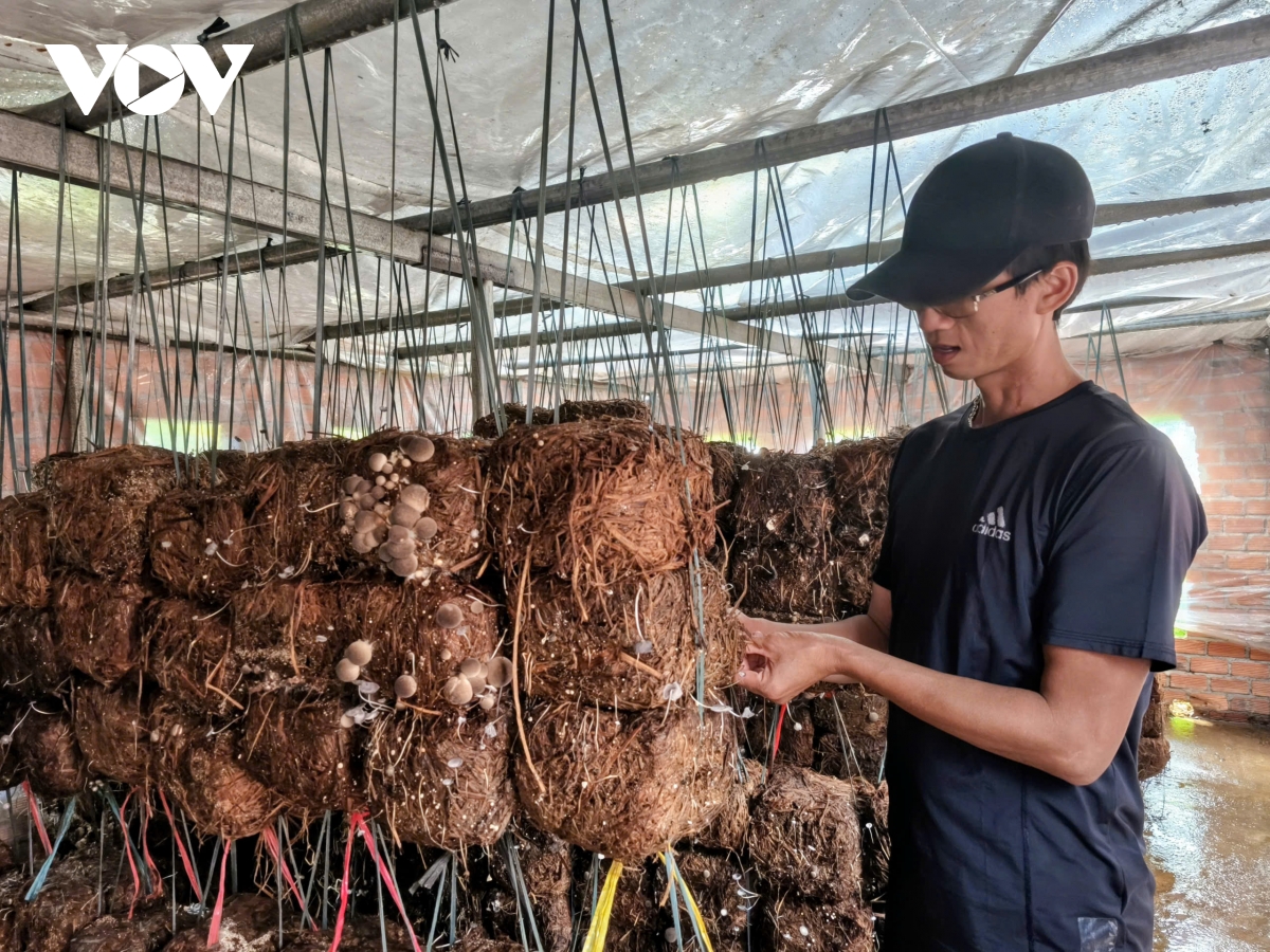“Nghề này tạo được công ăn việc làm cho bà con ở xã, thứ hai tạo rat hu nhập khá đều. Ví dụ như tính nhà em không 10 trại thì một tháng thu nhập trừ chi phí từ 20 đến 30 triệu, nó còn phụ thuộc vào giá nấm nữa. Em thấy rất có tương lai, nó là một vòng tuần hoàn từ cái rơm mình gặt xong ở ngoài đồng mình làm nấm, xong rồi mình mang ra lại bón cho cà phê, tiêu, sầu riêng, nó rất là tốt”, anh Cường chia sẻ