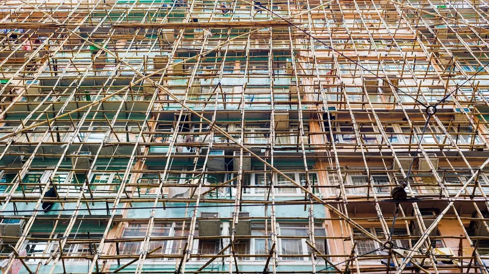 Nhiều thập niên trước ở Hong Kong, thợ giàn giáo tre làm việc trên cao chỉ với dây an toàn đơn giản hoặc thậm chí không có. Ngày nay, mọi thứ đã thay đổi: thợ phải được đào tạo, có chứng chỉ và mang đầy đủ trang bị an toàn.