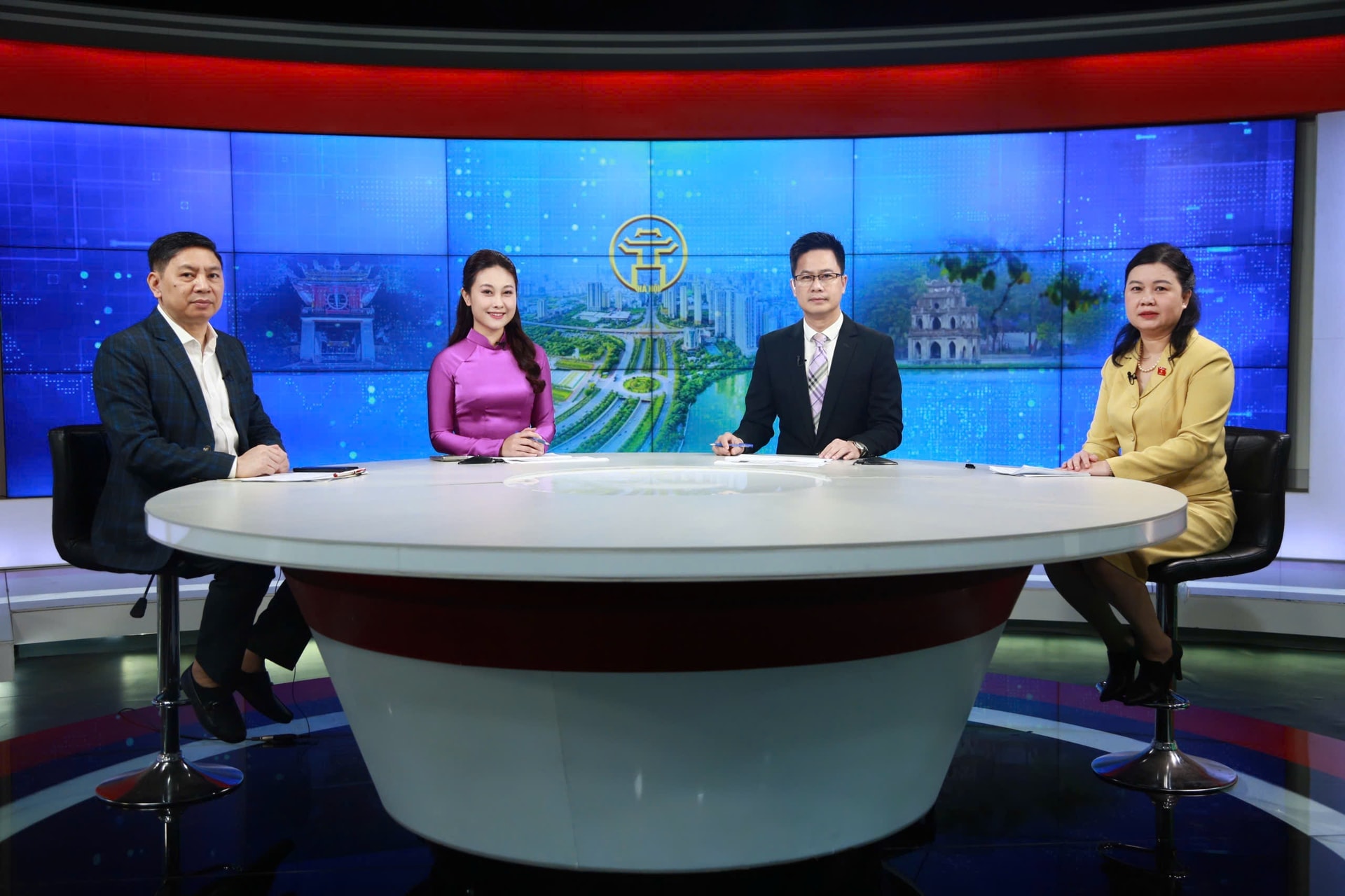 Hai vị khách mời: Phó Chủ nhiệm Ủy ban Pháp luật và Tư pháp của Quốc hội Nguyễn Phương Thủy và Phó Giám đốc Sở Tư pháp Hà Nội Nguyễn Công Anh tham gia Chương trình Thời sự đặc biệt với chủ đề “Sửa đổi Luật Thủ đô - Hoàn thiện thể chế để Hà Nội phát triển trong kỷ nguyên mới”. Ảnh: Phạm Hùng