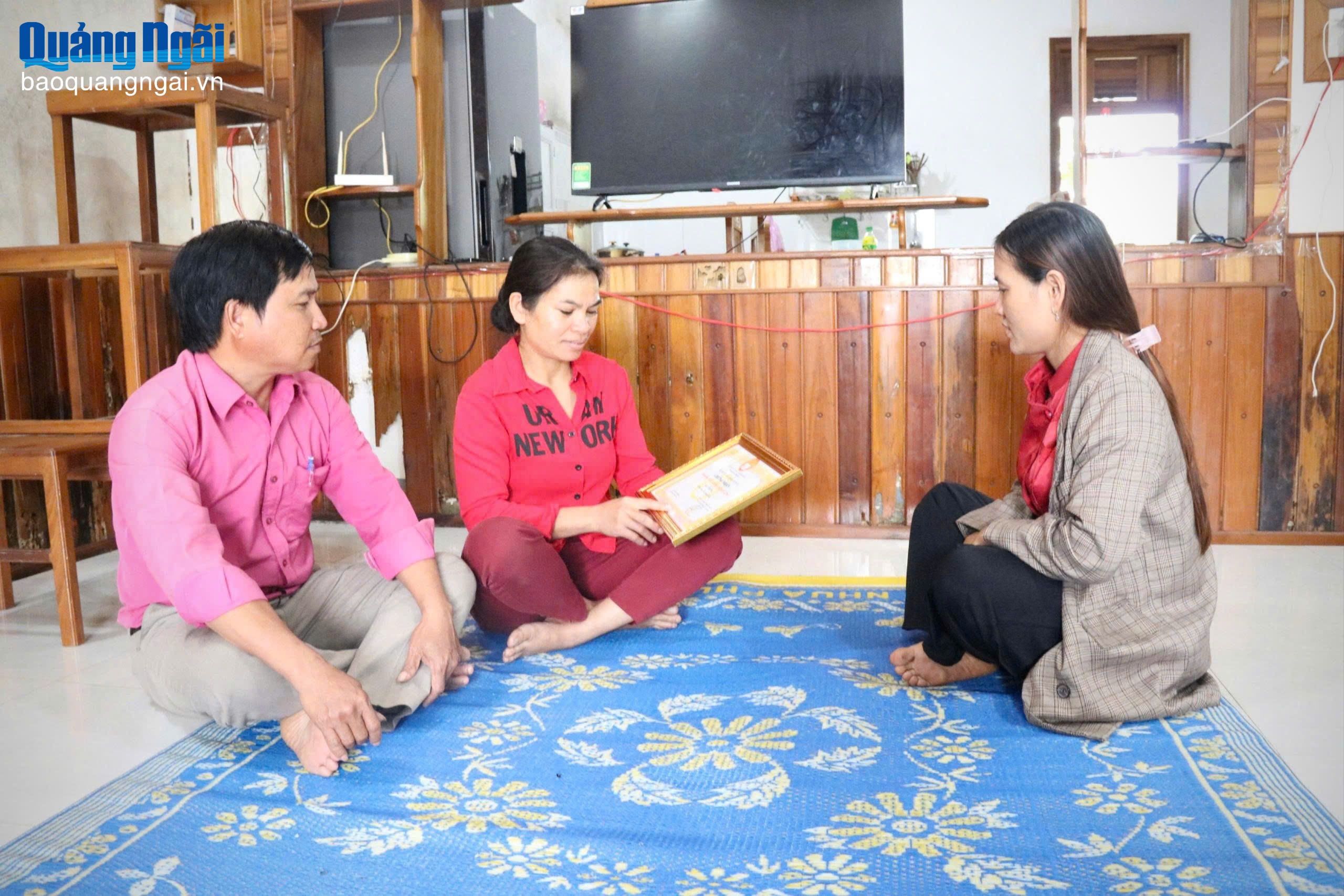 Chị Y Phong (giữa), ở thôn Năng Nhỏ 2, xã Đăk Sao, chia sẻ về hành trình vượt khó của mình. Ảnh: HOÀNG LỘC