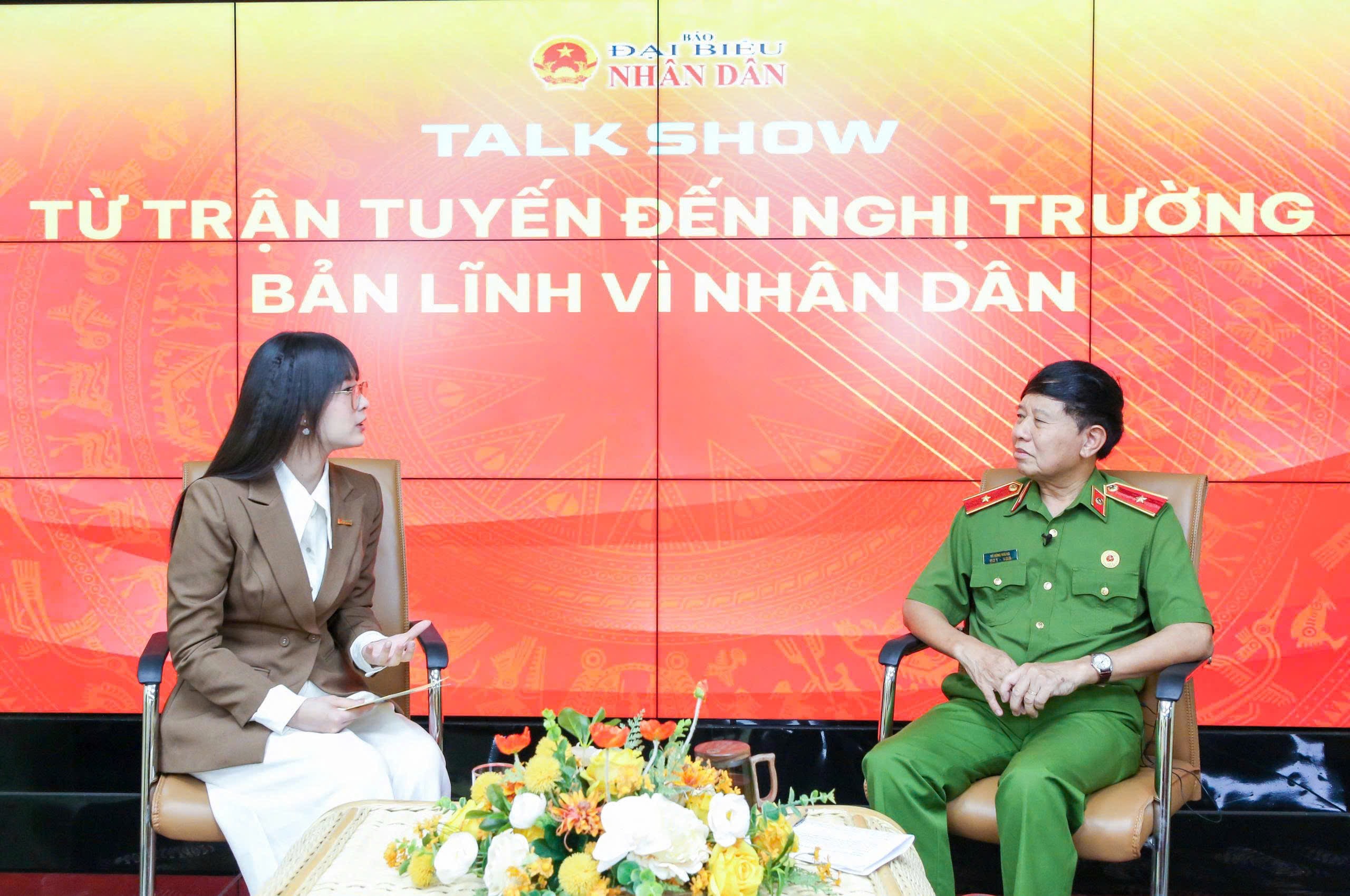 Thiếu tướng, Anh hùng Lực lượng vũ trang nhân dân Vũ Hùng Vương trao đổi với phóng viên Báo Đại biểu Nhân dân. Ảnh: Xuân Quý