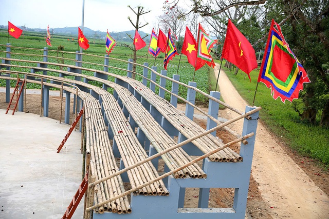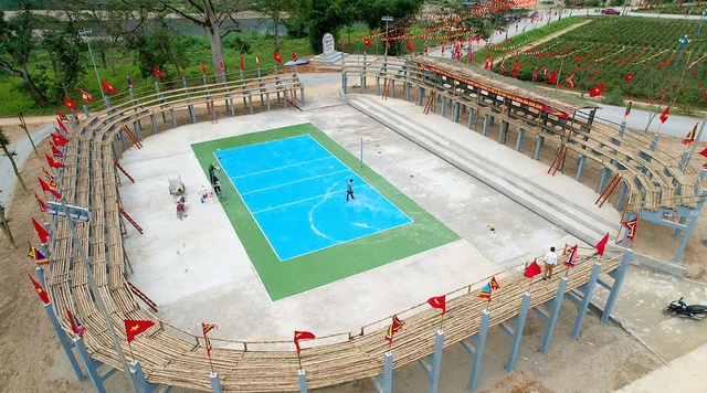 Sân vận động tre 2.000 chỗ ngồi nổi bật giữa không gian làng quê, trở thành điểm nhấn của lễ hội năm nay. Sân đang được kiểm tra và hoàn tất nhưng khâu cuối cùng để chuẩn bị cho ngày khai hội sẽ diễn ra vào 19/3.