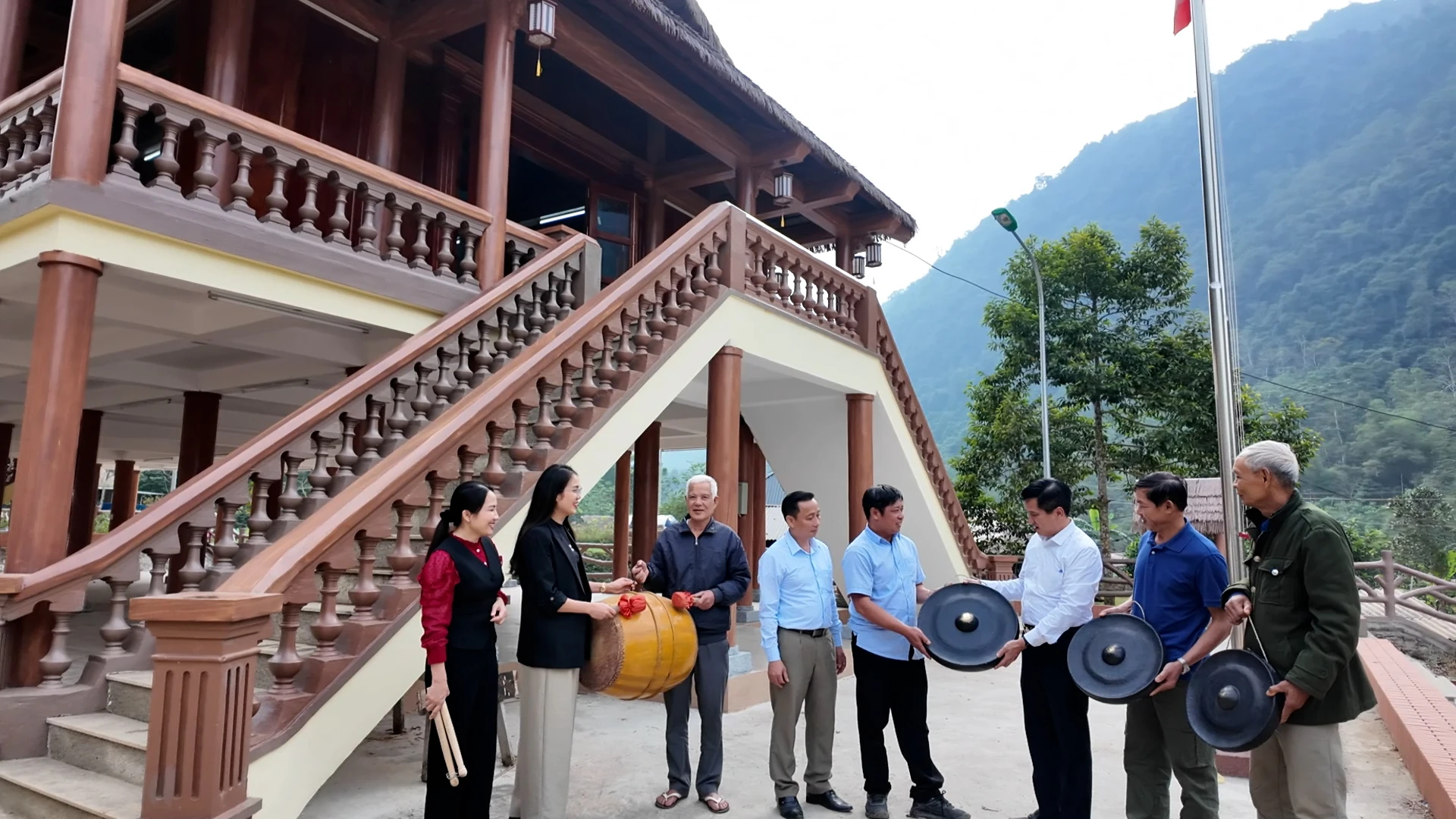 Trung tâm Nghiên cứu ứng dụng và Chuyển giao khoa học công nghệ, Trường Đại học Hồng Đức, trao bộ cồng chiêng cho người dân thôn Ấm Hiêu, xã Cổ Lũng.
