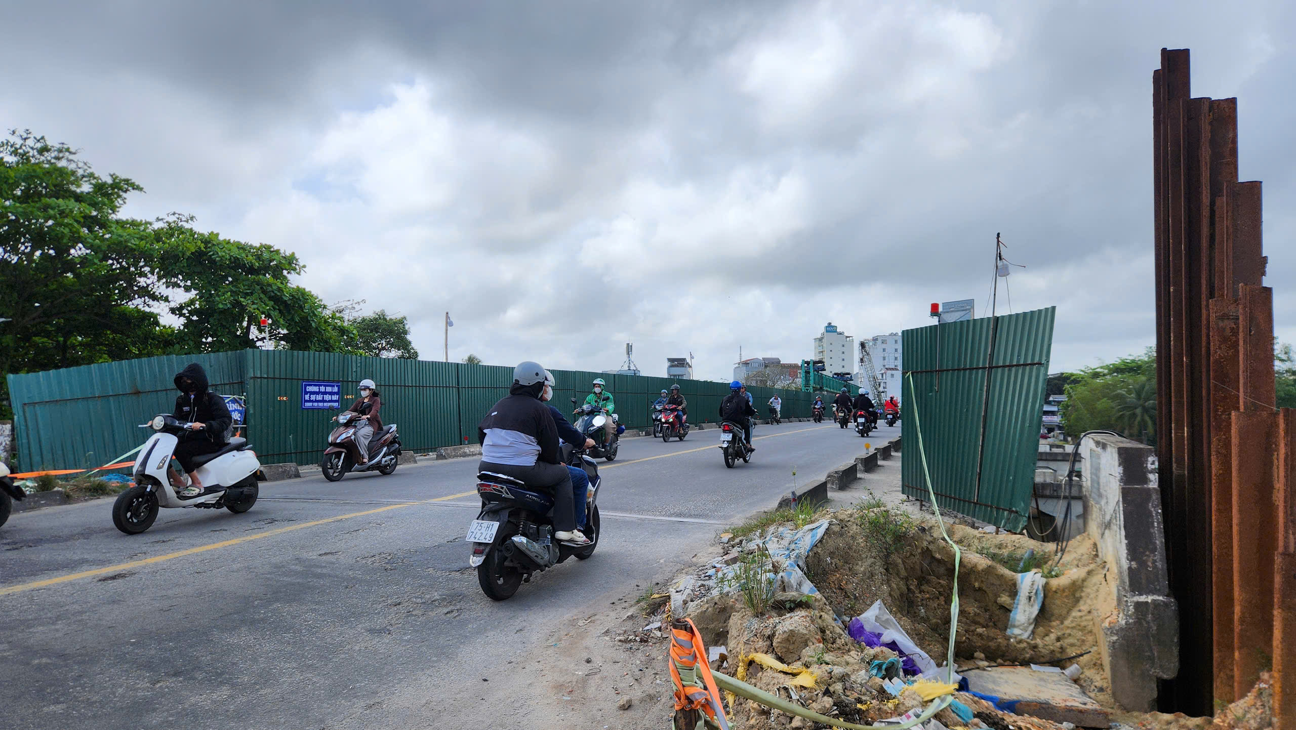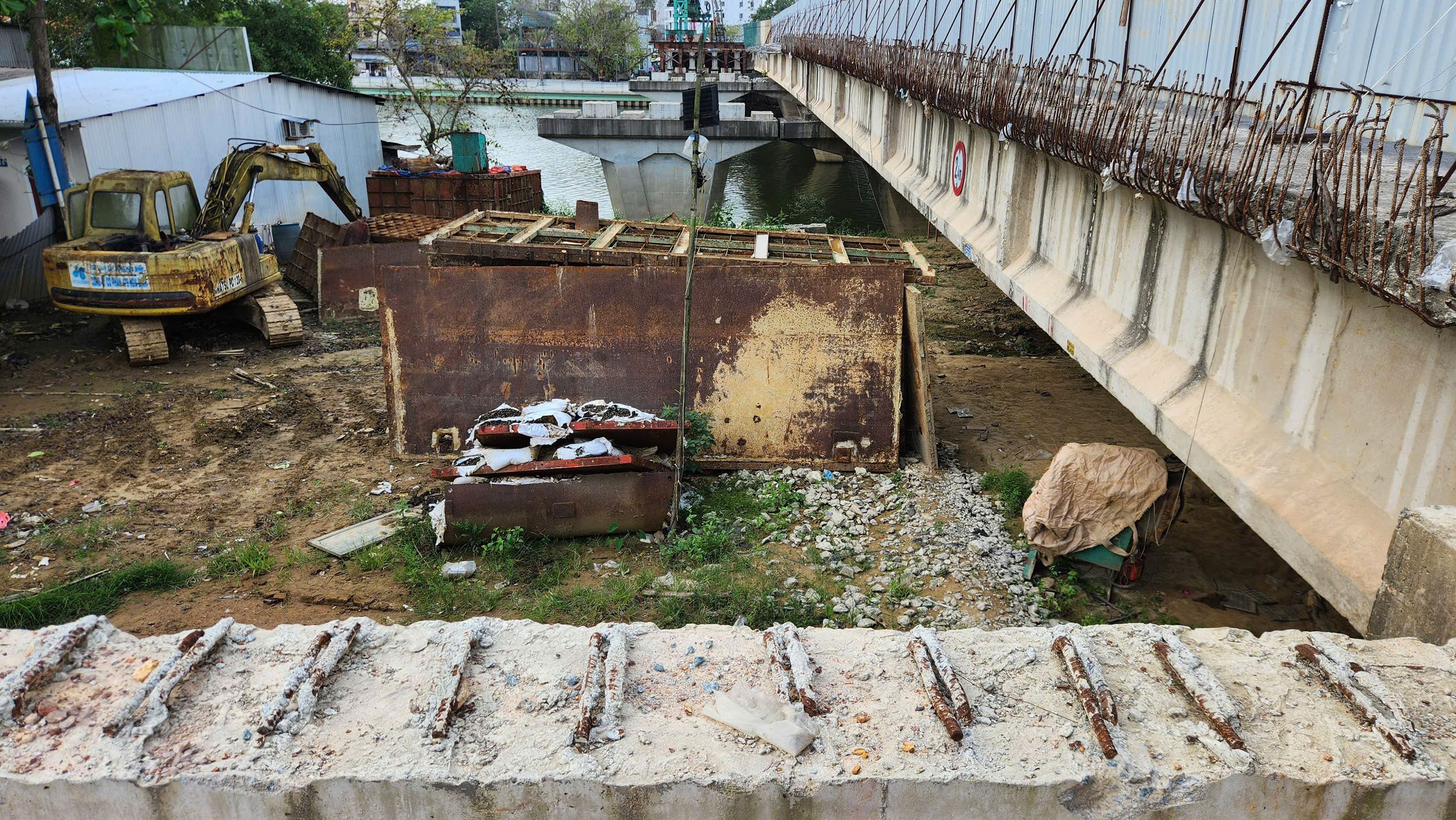 Ngổn ngang ở hạng mục mở rộng cầu Vỹ Dạ.