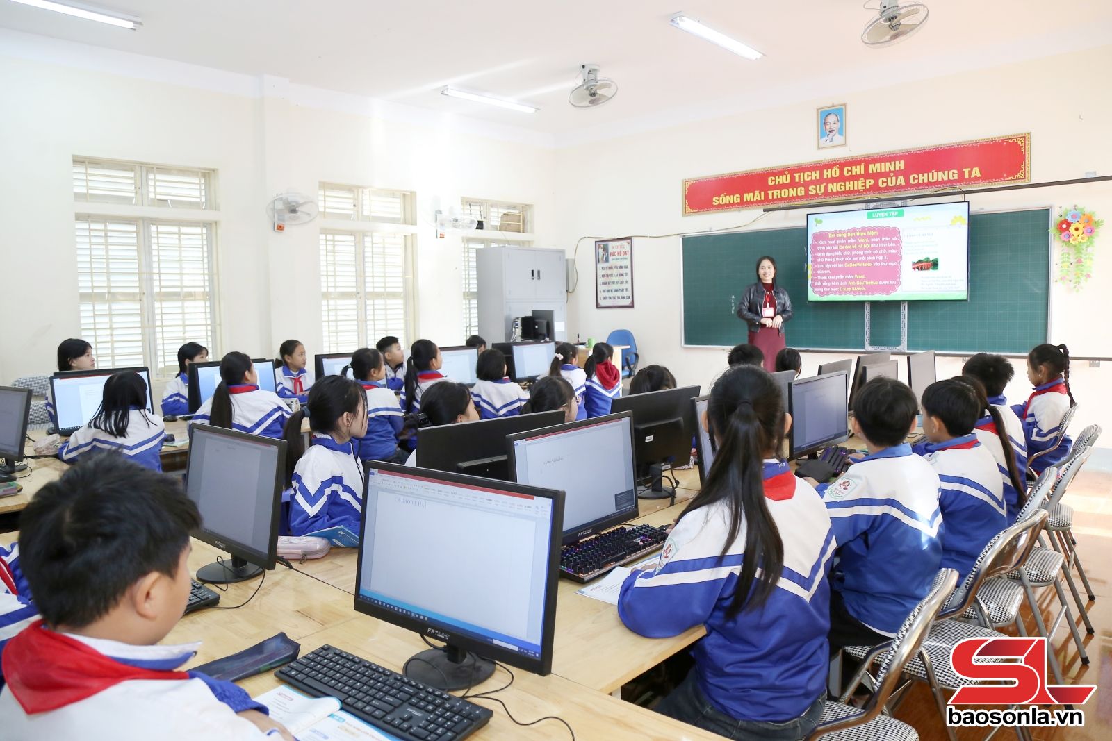 Giờ tin học của cô và trò Trường Tiểu học Kim Đồng.
