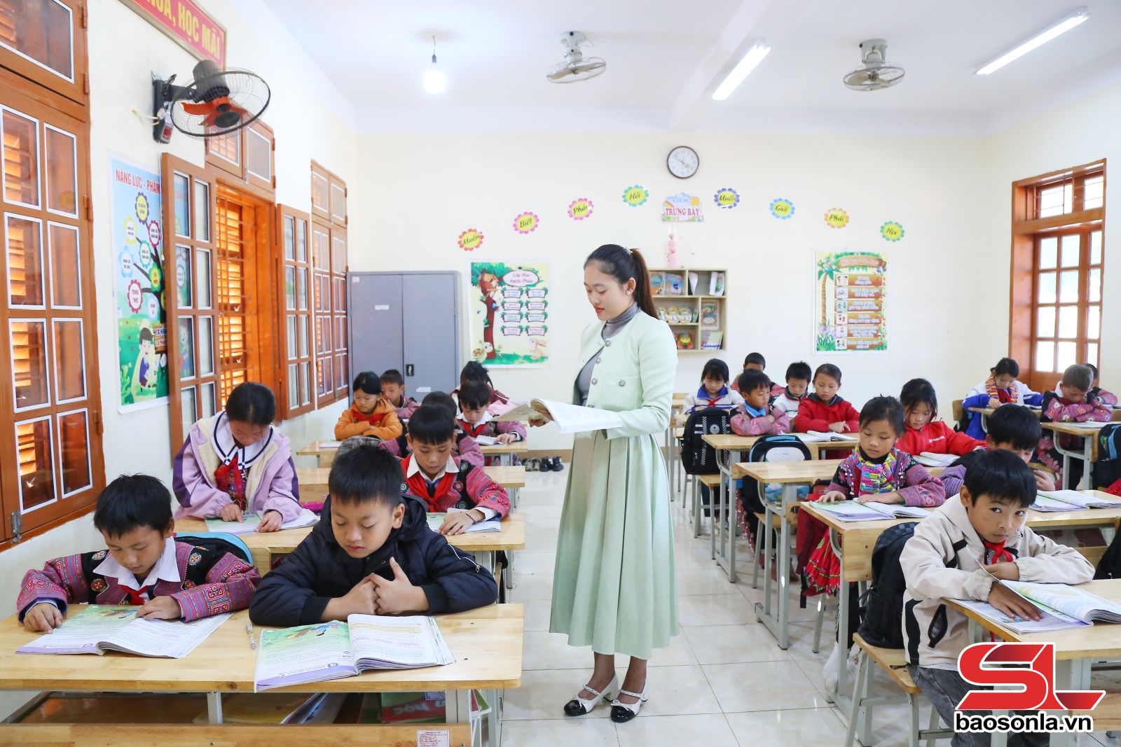 Tiết học của cô và trò Trường Tiểu học Lóng Luông, xã Vân Hồ.