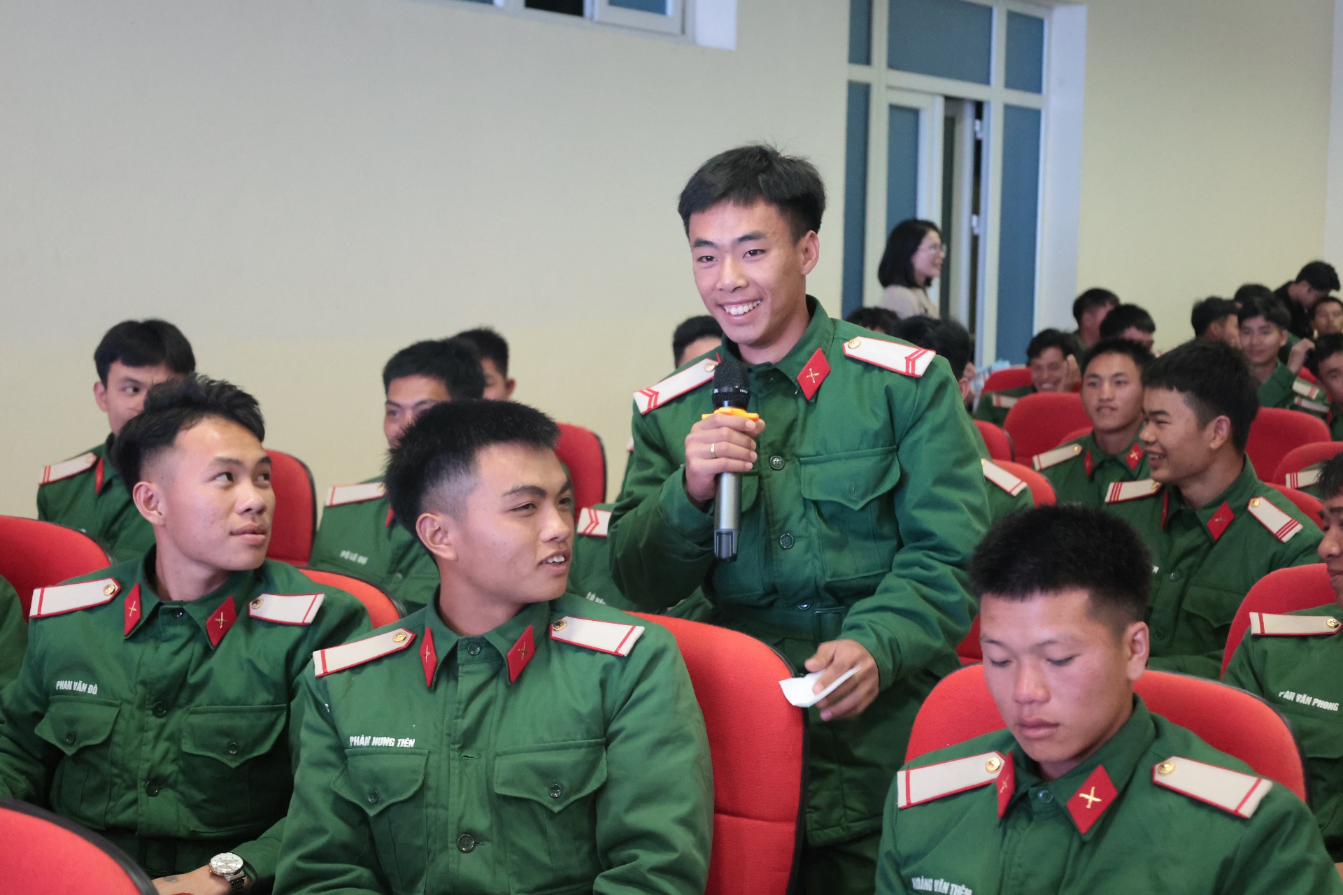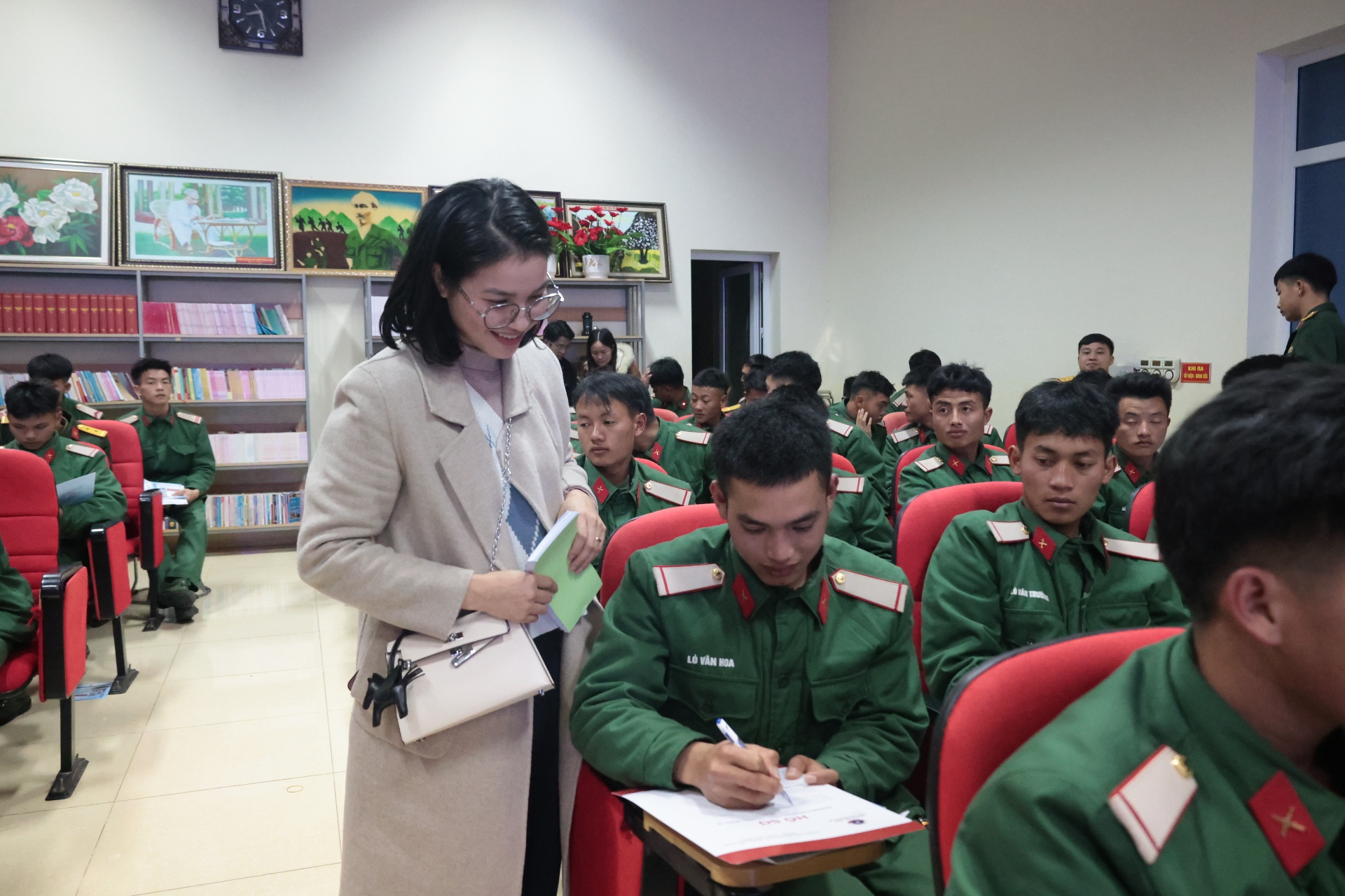Chiến sĩ trao đổi một số nội dung liên quan đến hoạt động hướng nghiệp.