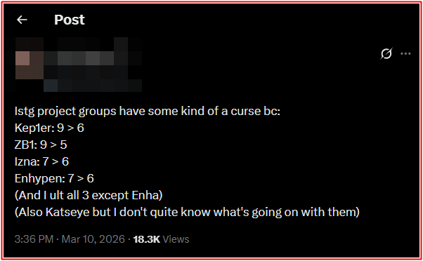 Tuy nhiên, không ít ý kiến cho rằng hiện tượng này có thể không chỉ xảy ra trong các nhóm liên quan đến HYBE. Một chủ đề thảo luận khác cũng thu hút sự chú ý khi đề cập đến các nhóm nhạc được thành lập thông qua chương trình truyền hình thực tế.