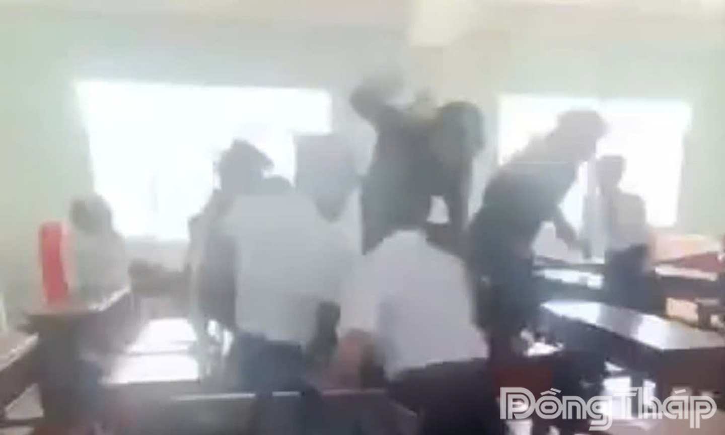 Vụ việc xảy ra tại lớp học. Ảnh cắt từ clip/Công an cung cấp