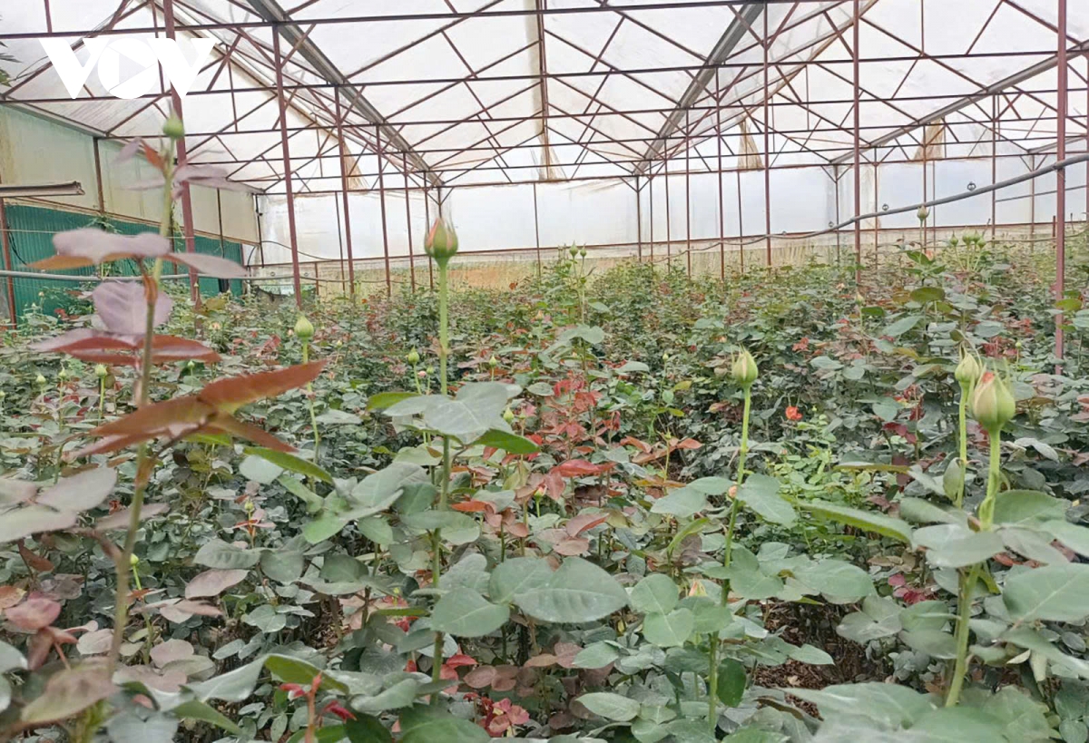 Một nhà kính trồng hoa hồng tại phường Lang Biang – Đà Lạt, nơi mỗi ha có thể cho thu hoạch hàng trăm nghìn cành mỗi tháng.